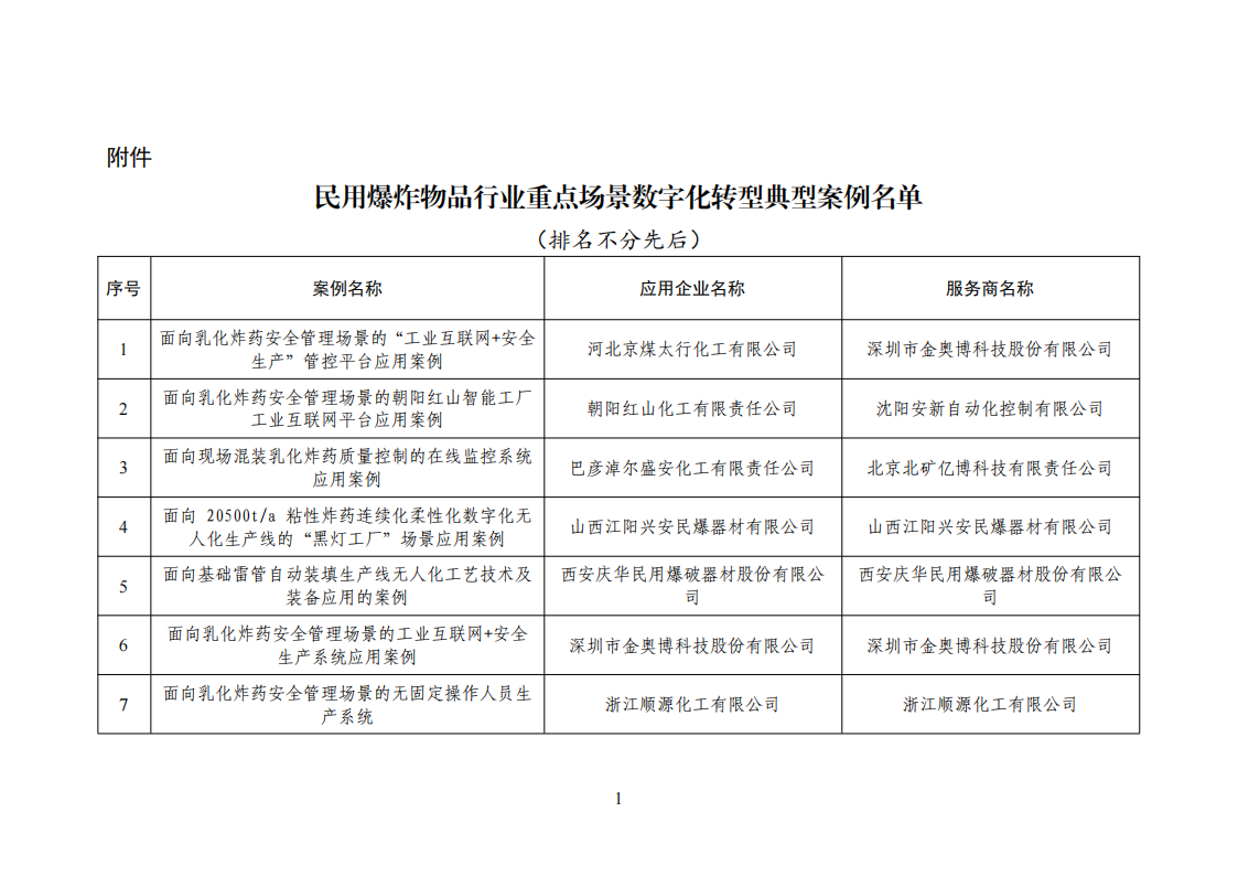 附件:民用爆炸物品行業重點場景數字化轉型典型案例名單