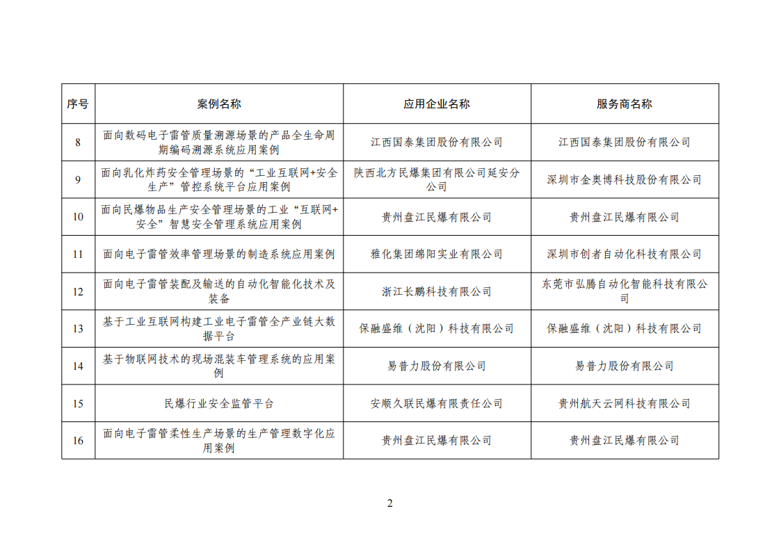 工業和信息化部辦公廳關于公布民用爆炸物品行業重點場景數字化轉型典型案例名單的通知