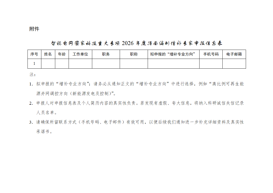 關于增補智能電網國家科技重大專項2026年度指南編制專家的通知