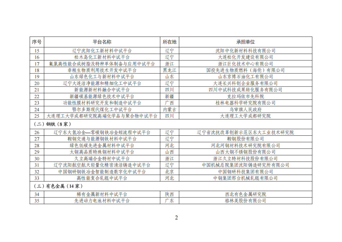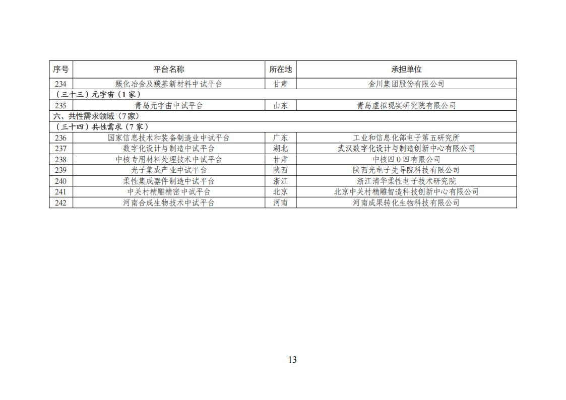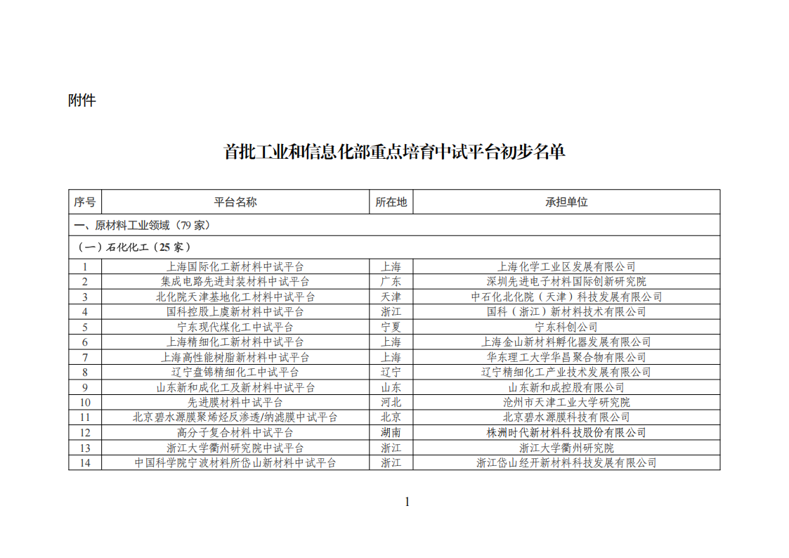首批工業和信息化部重點培育中試平臺初步名單公示