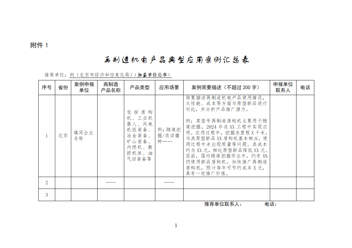 (二)請各省級工業和信息化主管部門于2025年9月1日前,將加蓋公章的推薦文件及典型案例匯總表(附件1)報送至工業和信息化部(節能與綜合利用司),并將典型案例匯總表及典型案例申報表(附件1、2)電子版發送至zyzhly@miit.gov.cn。