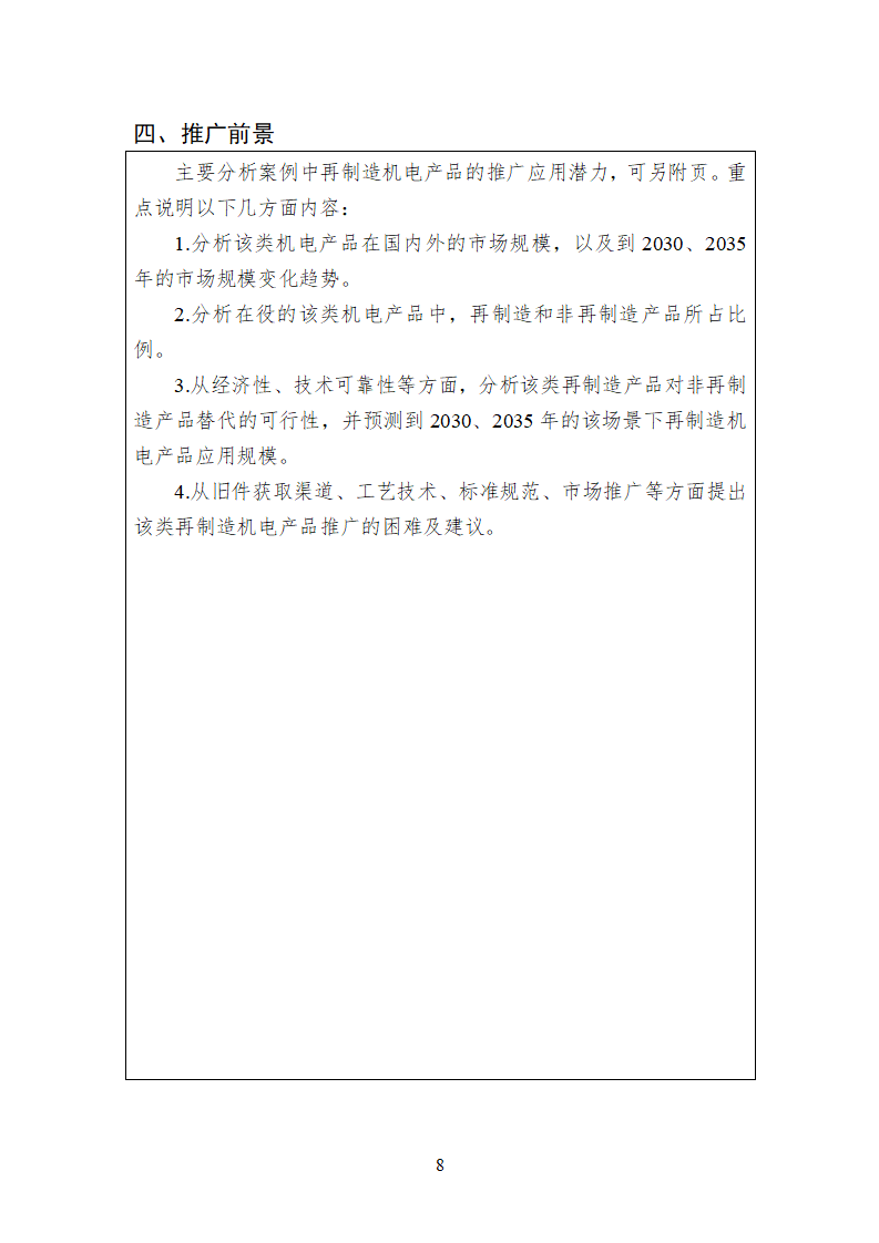 (一)請各省級工業和信息化主管部門組織本地區機電產品再制造企業填報申報材料,就申報材料中案例的先進性、可復制性等進行評估,擇優推薦符合要求的典型案例,每個省(區、市)推薦的案例原則上不超過5個。