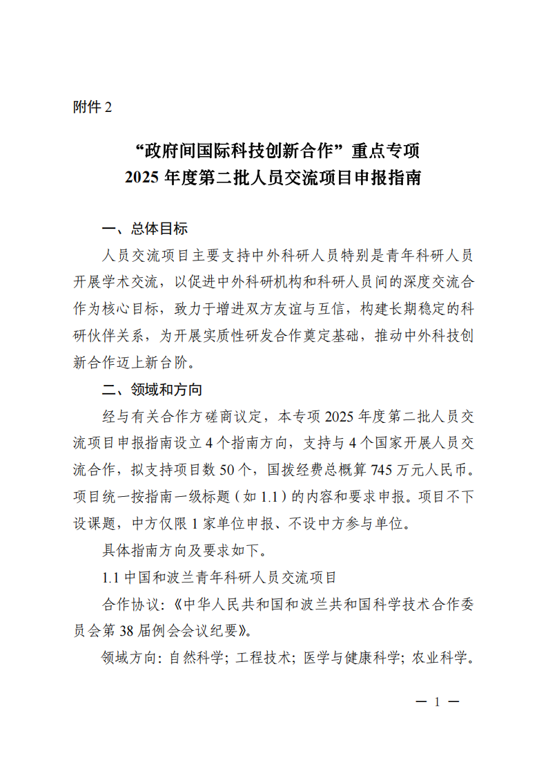根據(jù)《國家重點研發(fā)計劃管理暫行辦法》(國科發(fā)資〔2024〕28號)相關(guān)要求,現(xiàn)發(fā)布“政府間國際科技創(chuàng)新合作”重點專項2025年度第二批人員交流項目申報指南。請根據(jù)指南要求組織項目申報工作。有關(guān)事項通知如下。