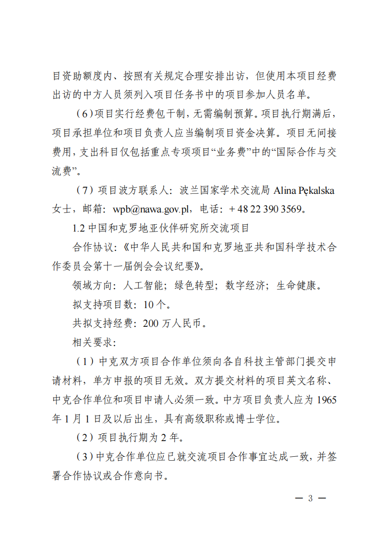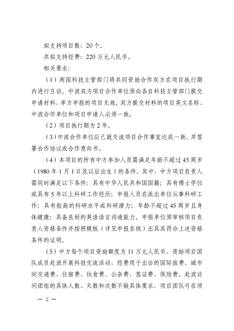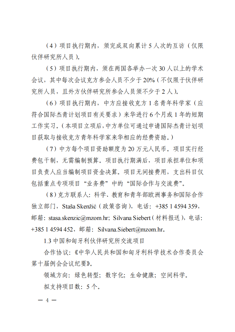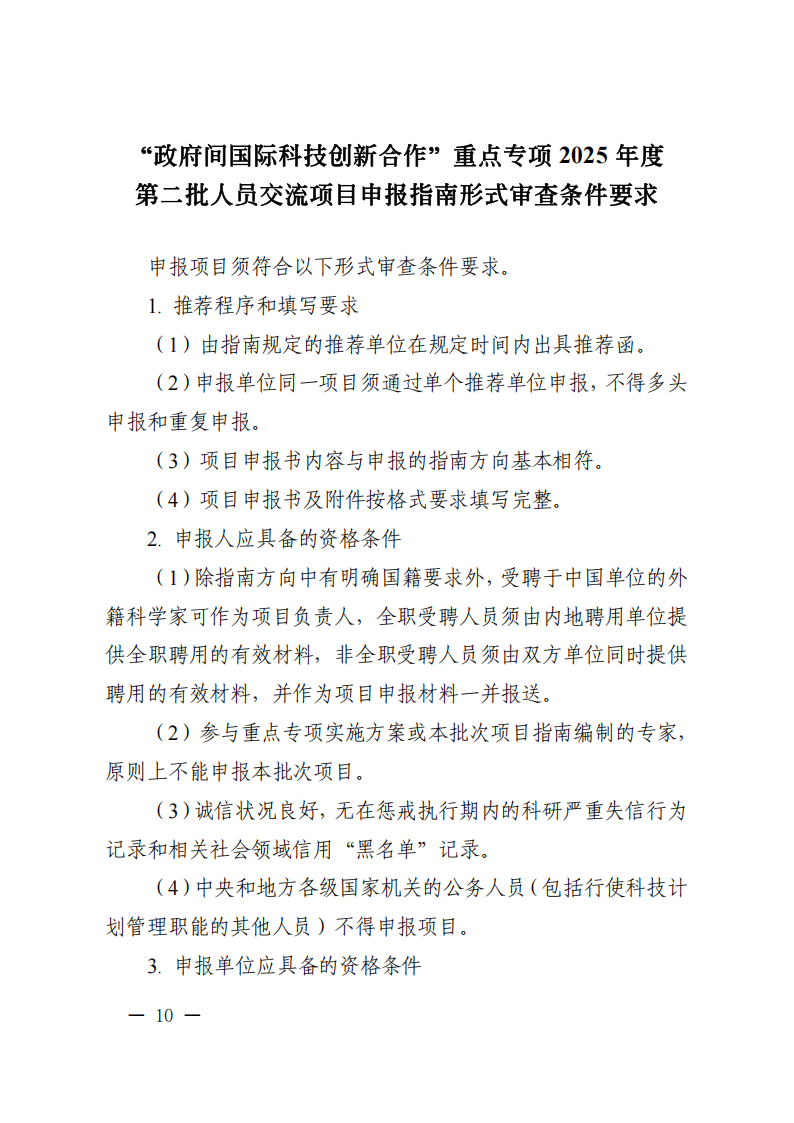 3. 本批次指南項目屬于“政府間國際科技創(chuàng)新合作”重點專項人員交流類項目,不計入項目負責人申請和承擔國家重點研發(fā)計劃項目、國家科技重大專項(含科技創(chuàng)新2030—重大項目)的項目總數(shù)限項范圍(不進行項目負責人限項聯(lián)合審查),但項目負責人申請和在研的同一國別的人員交流類項目合計不得超過1項。
