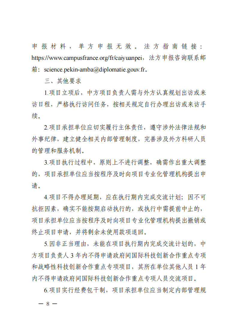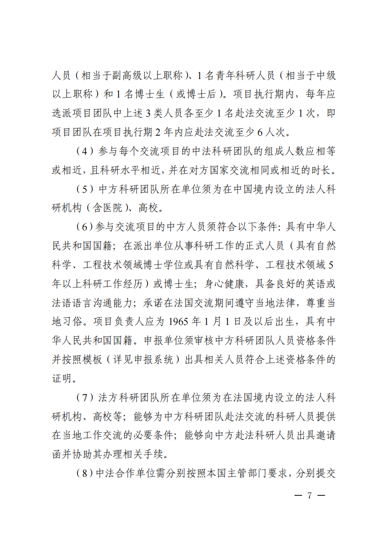 6. 項目合作內(nèi)容和方式應符合我國及各合作機構(gòu)所在國家(地區(qū)、國際組織)有關(guān)法律法規(guī)和科研倫理相關(guān)規(guī)定。凡開展須事先審查報批的合作活動,例如涉及人類遺傳資源或種質(zhì)資源等,項目申報單位須事先依法依規(guī)履行國內(nèi)有關(guān)審查報批手續(xù)。所有必需的手續(xù)完備后,項目才可正式立項。