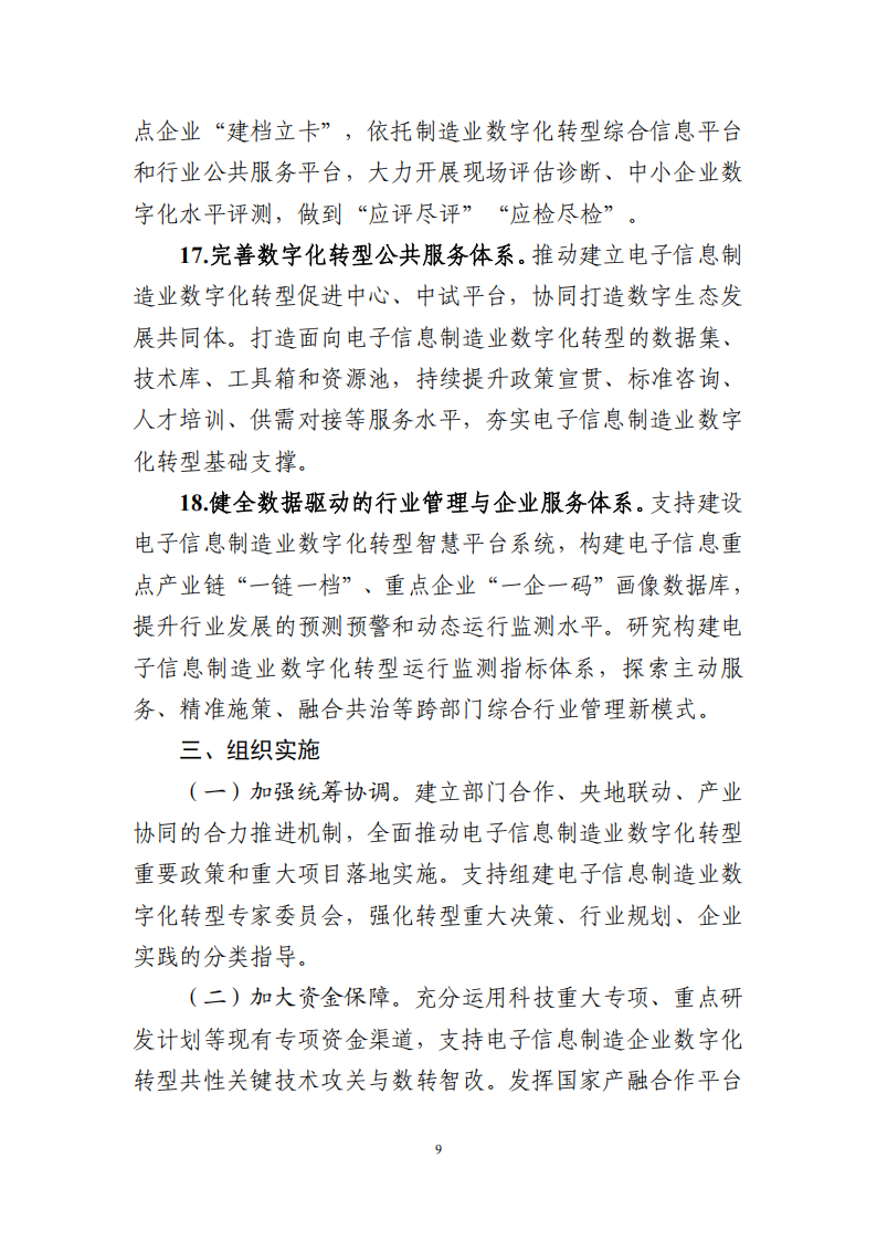 三部門關(guān)于印發(fā)《電子信息制造業(yè)數(shù)字化轉(zhuǎn)型實(shí)施方案》的通知