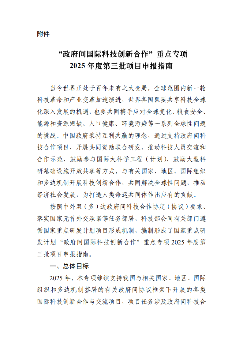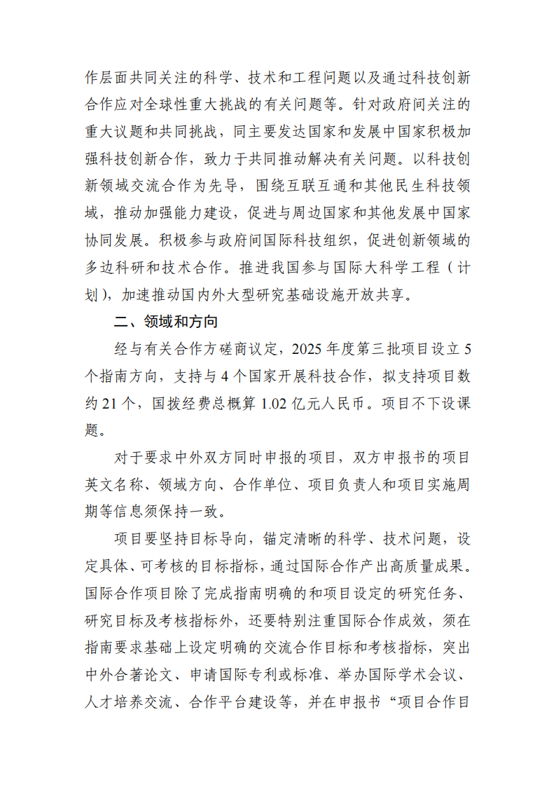 關于對國家重點研發計劃“政府間國際科技創新合作”重點專項2025年度第三批項目申報指南征求意見的通知