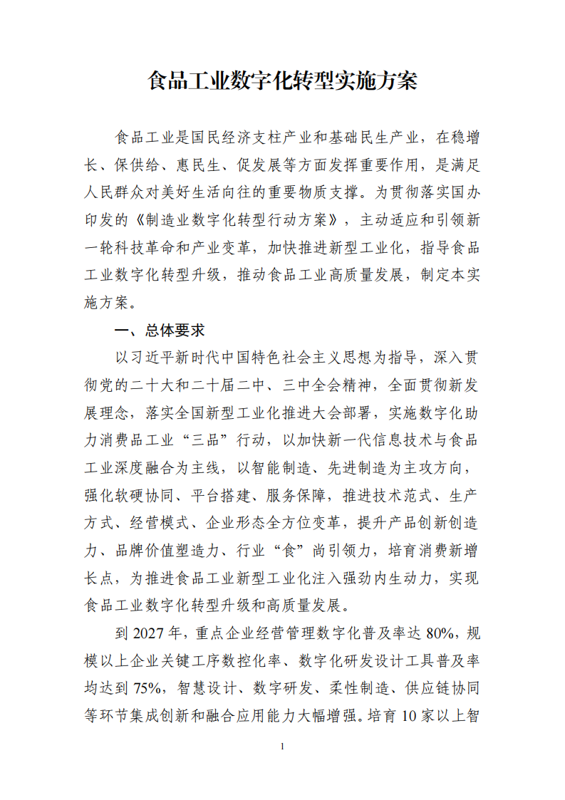 現將《食品工業數字化轉型實施方案》印發給你們,請結合實際認真抓好落實。