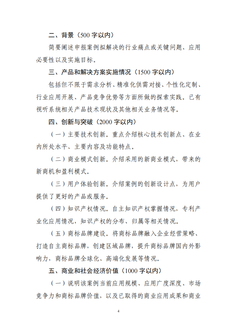 (三)各申報單位填報《2025年度視聽系統典型案例申報書》(附件1),報所在地工業和信息化主管部門,央企子企業報所屬中央企業。申報材料要求描述詳實、重點突出、表述準確,字數控制在5000字以內。