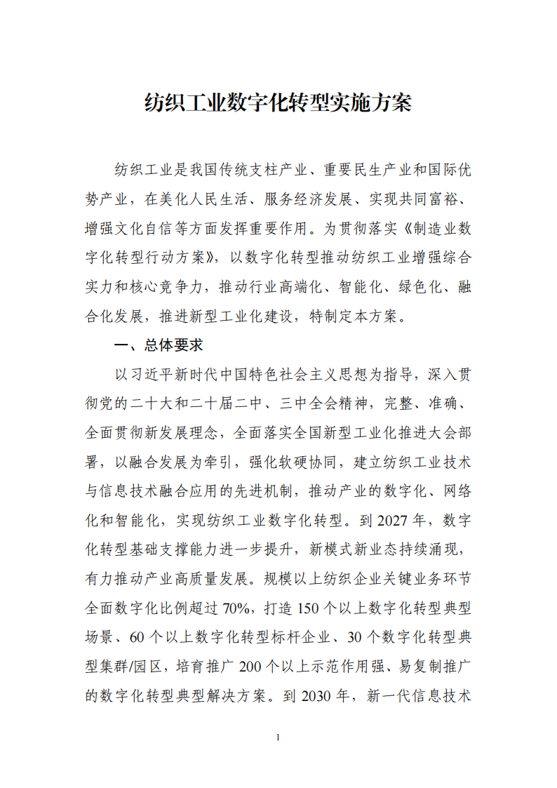 現(xiàn)將《紡織工業(yè)數(shù)字化轉(zhuǎn)型實施方案》印發(fā)給你們,請結(jié)合實際認真抓好落實。