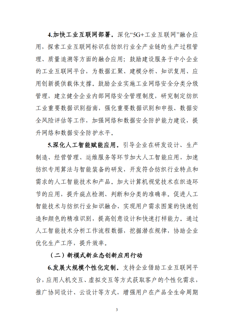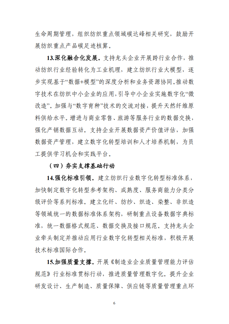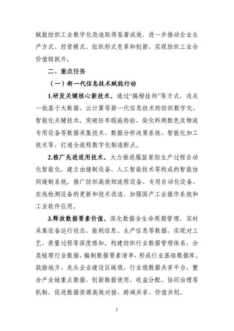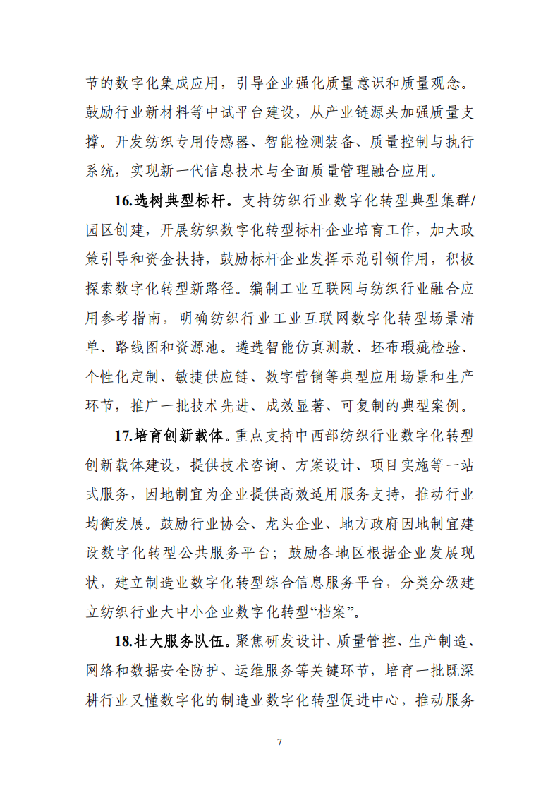 工業(yè)和信息化部等六部門關(guān)于印發(fā)《紡織工業(yè)數(shù)字化轉(zhuǎn)型實施方案》的通知