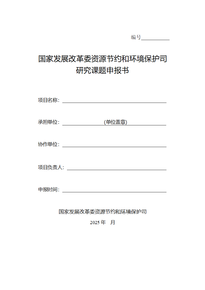 附件:國(guó)家發(fā)展改革委資源節(jié)約和環(huán)境保護(hù)司研究課題申報(bào)書(shū)