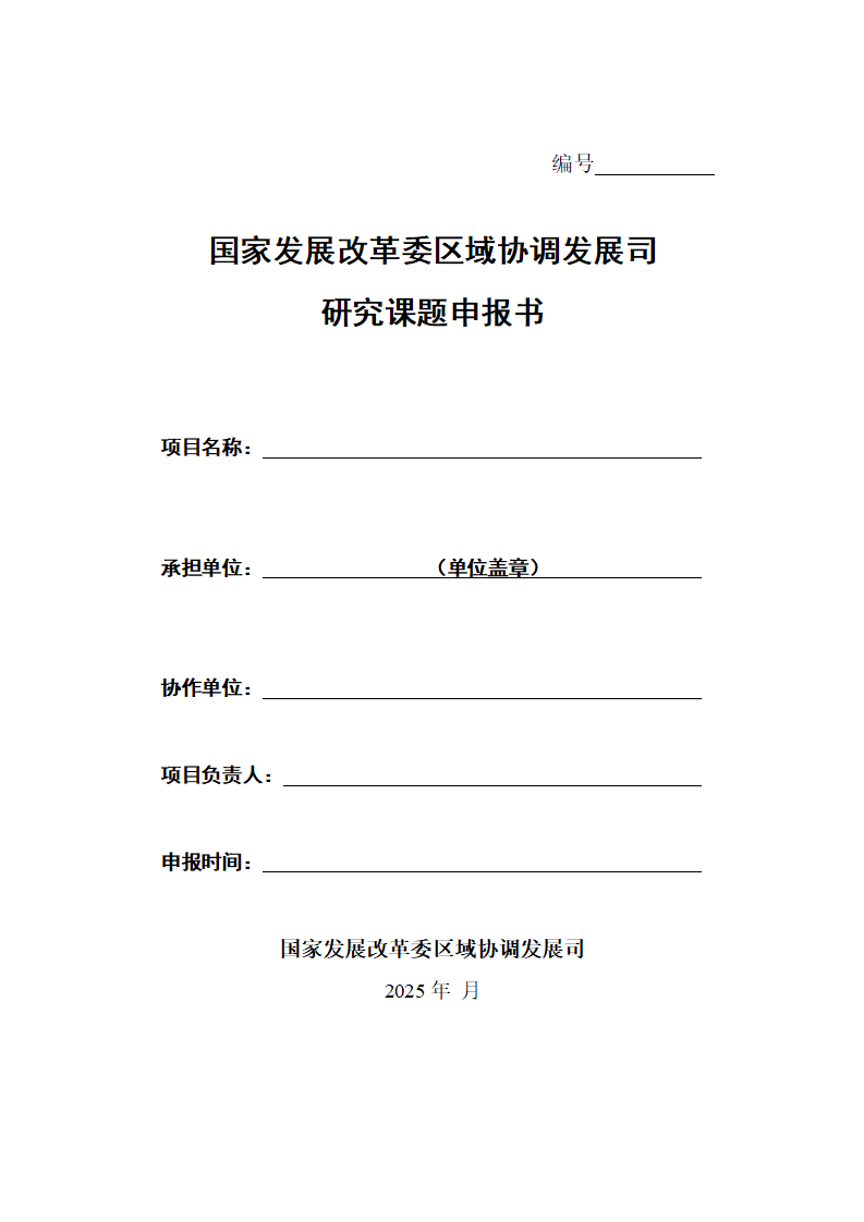 國家發展改革委區域協調發展司2025年度研究課題征集公告