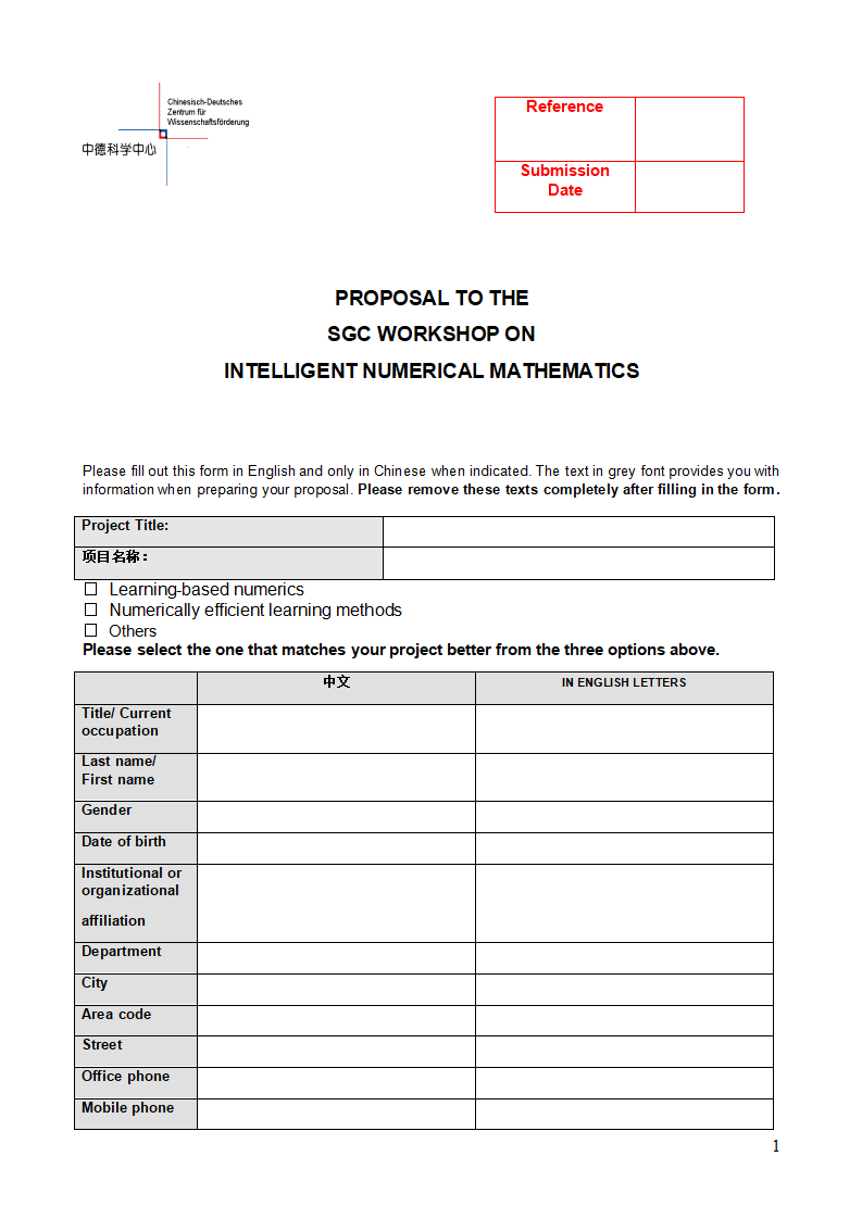 申請人完成申請書撰寫后,將相關(guān)材料電子版提交至中德科學(xué)中心,同時需報送紙質(zhì)申請書一份。紙質(zhì)申請書內(nèi)容及簽字蓋章的信息應(yīng)與電子版申請書嚴格保持一致。
