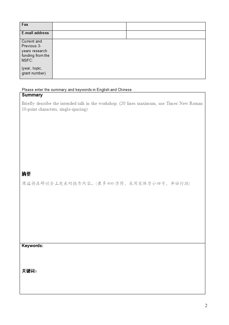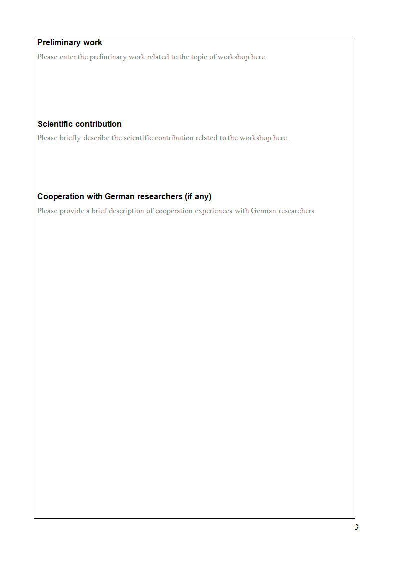 (2)申請書摘要需包含研討會上預(yù)期報告的內(nèi)容,以及與德國合作伙伴前期或正在進行的合作(如有此情況)。