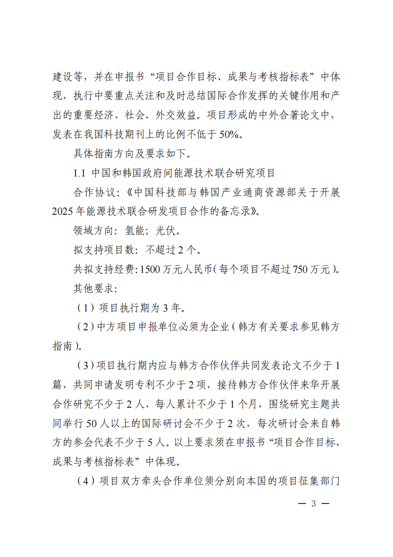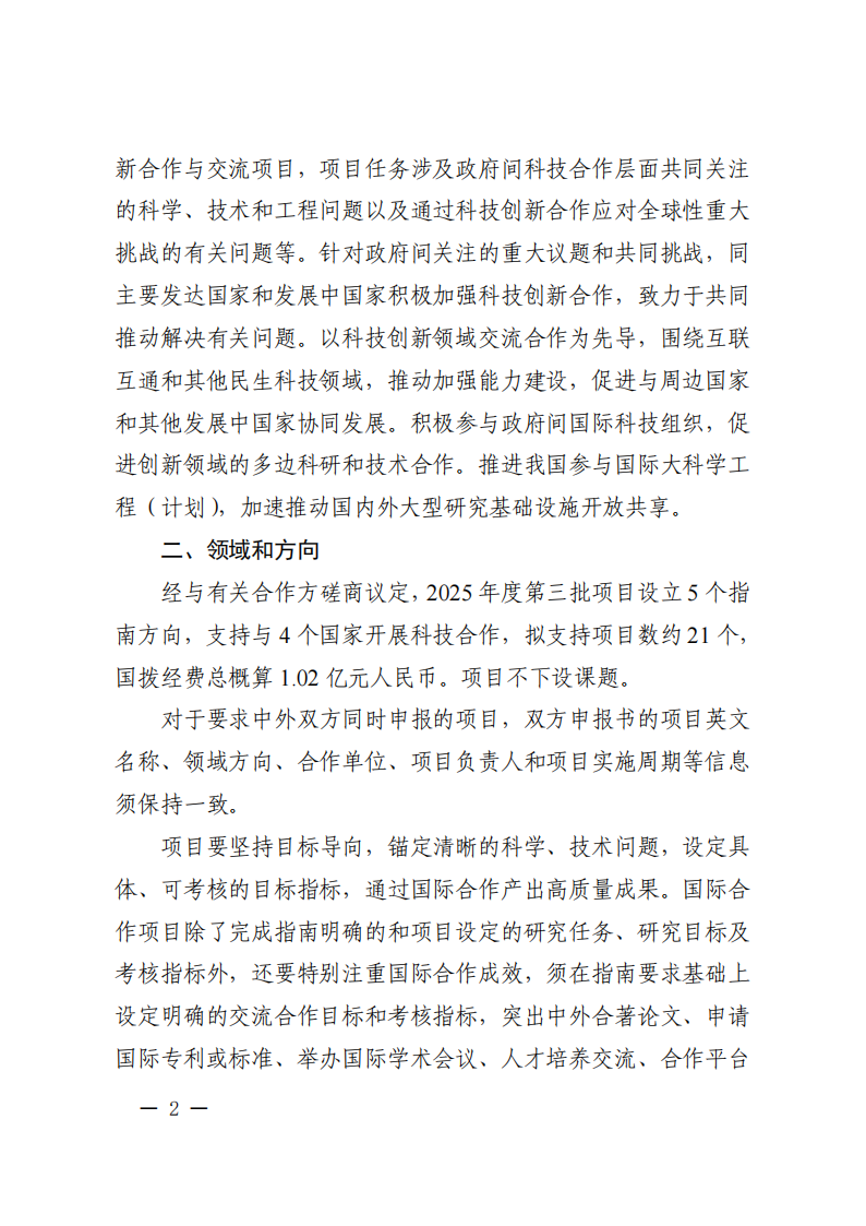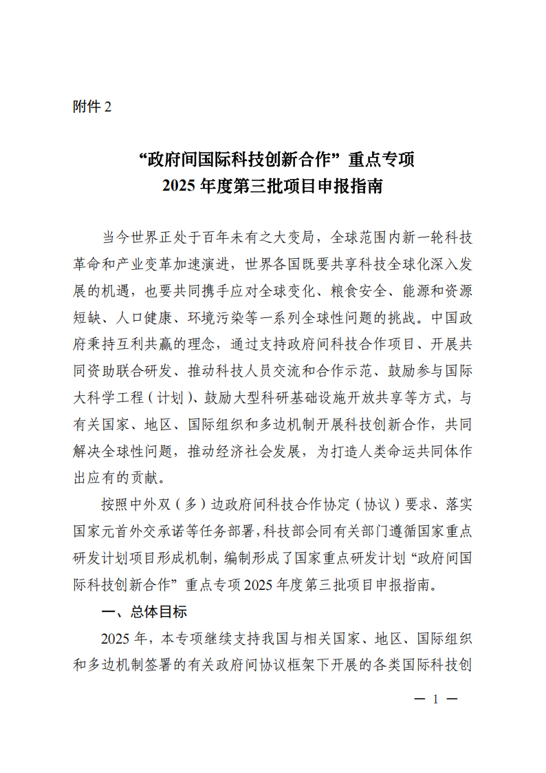 科技部國際合作司關于發布國家重點研發計劃“政府間國際科技創新合作”重點專項2025年度第三批項目申報指南的通知