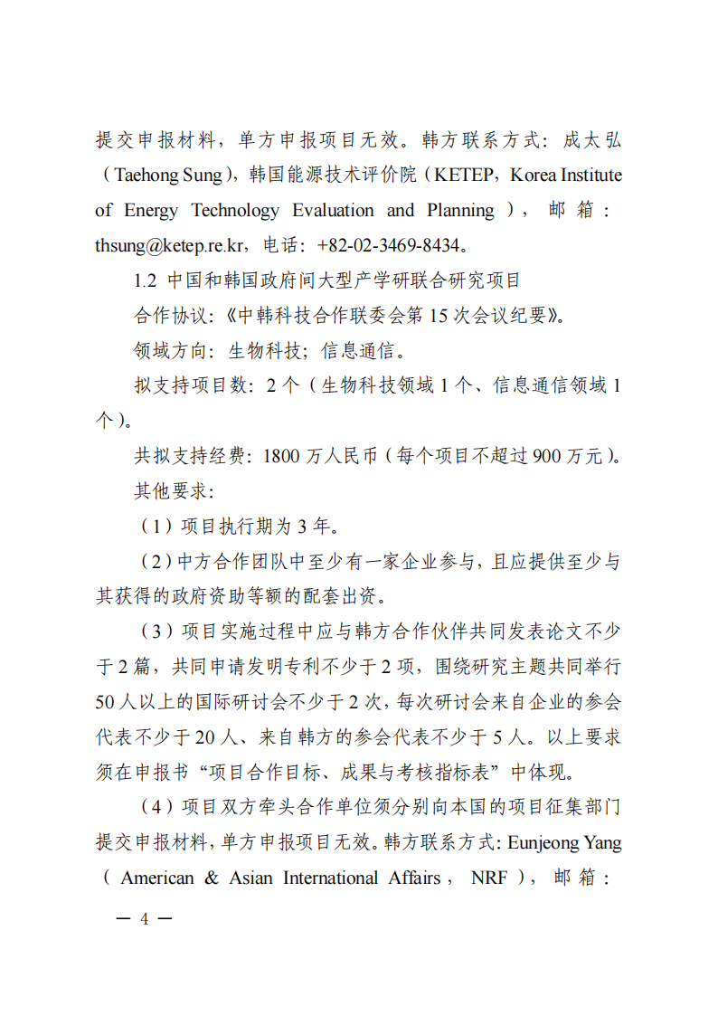9.政府間專項項目主要國外合作單位原則上為在國外注冊滿1年的獨立法人,且非中方機構的分支機構。項目牽頭申報單位必須與國外合作單位就本次項目申報簽訂合作協議。