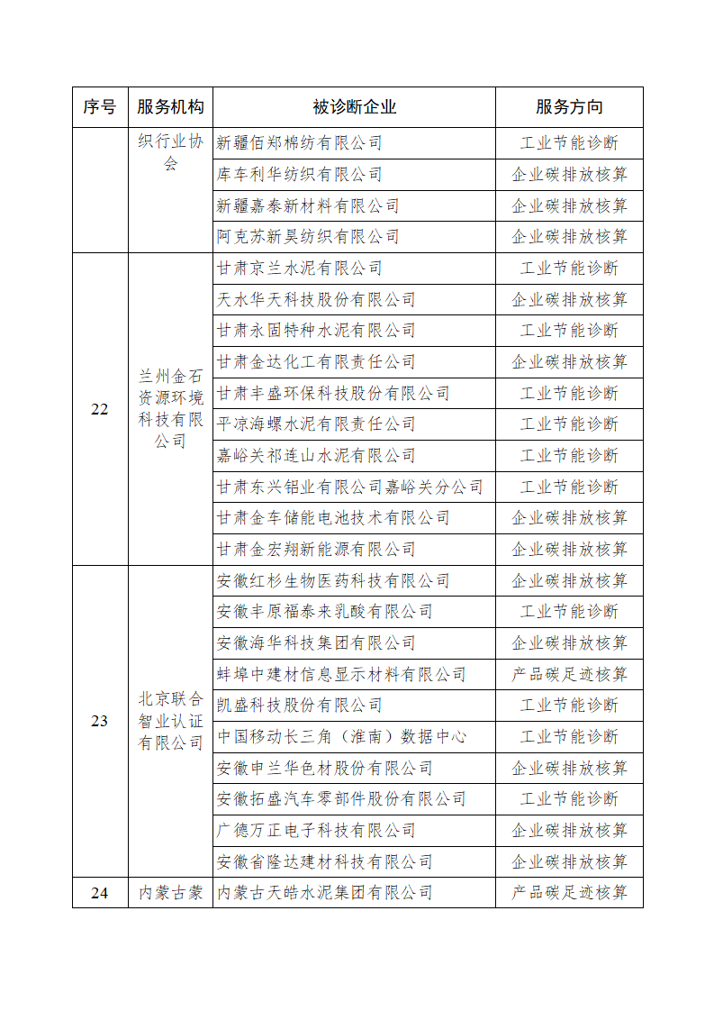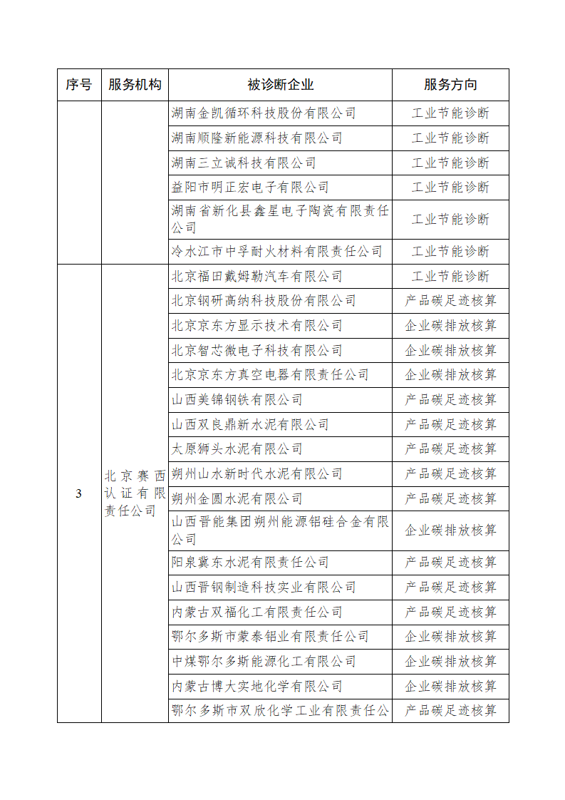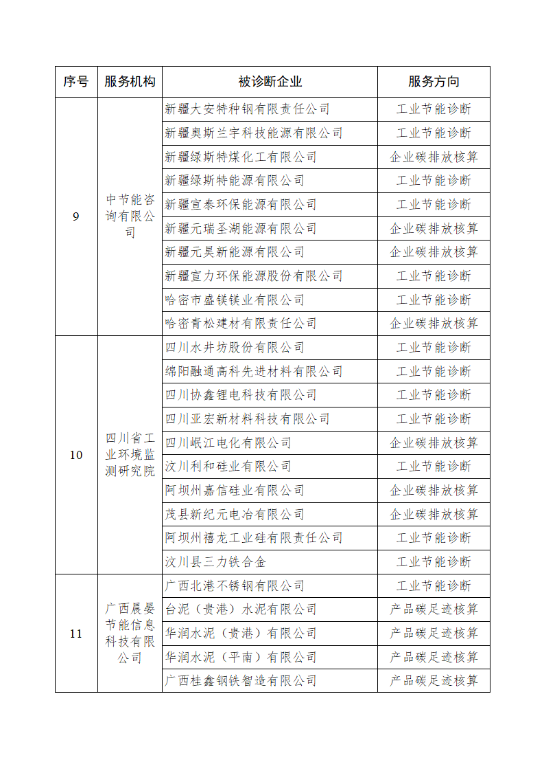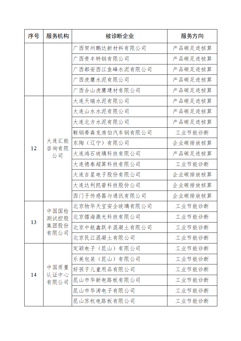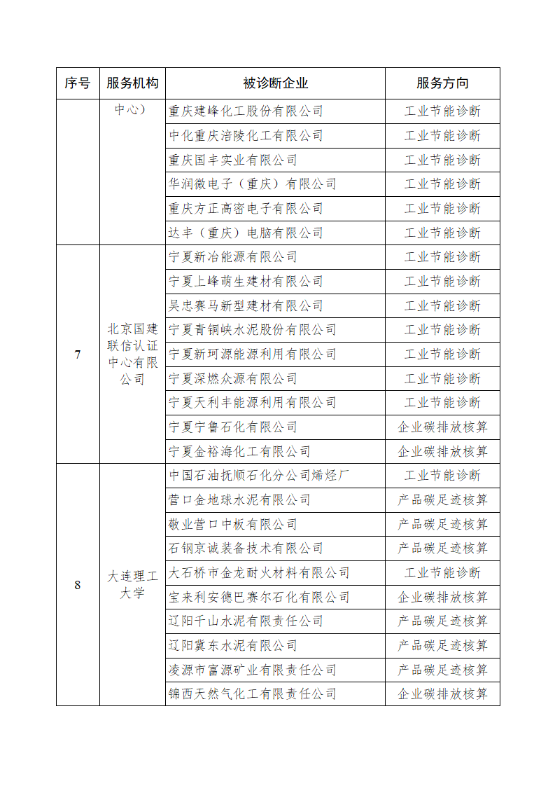 按照《工業和信息化部辦公廳關于組織開展2025年度工業節能降碳診斷服務工作的通知》(工信廳節函〔2025〕115號,以下簡稱《通知》),經省級工業和信息化主管部門、中央企業集團推薦,公開招標等程序,確定25家中標機構為307家工業企業提供節能診斷、產品碳足跡核算、企業碳排放核算等服務。現將任務清單印發給你們,請按照《通知》要求,落實好年度工業節能降碳診斷服務任務。