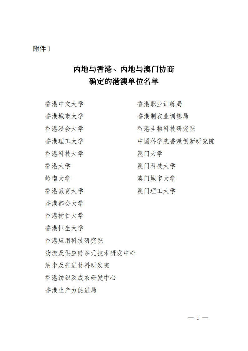 1. 本批次指南的項目申報單位應為在中國大陸境內(nèi)注冊的科研院所、高等學校和企業(yè)等,或由內(nèi)地與香港、內(nèi)地與澳門協(xié)商確定的港澳單位(附件1)。