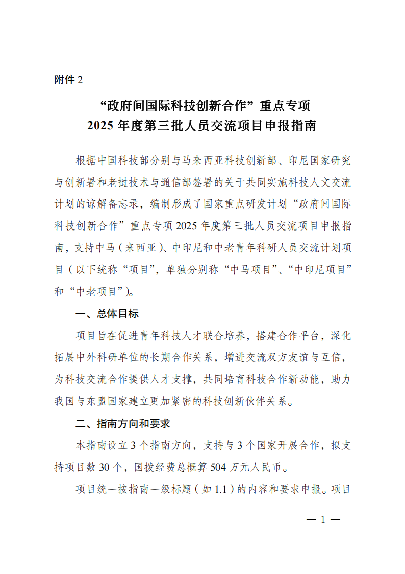 根據(jù)《國家重點研發(fā)計劃管理暫行辦法》(國科發(fā)資〔2024〕28號)相關要求,現(xiàn)發(fā)布“政府間國際科技創(chuàng)新合作”重點專項2025年度第三批人員交流項目申報指南。請根據(jù)指南要求組織項目申報工作。有關事項通知如下。