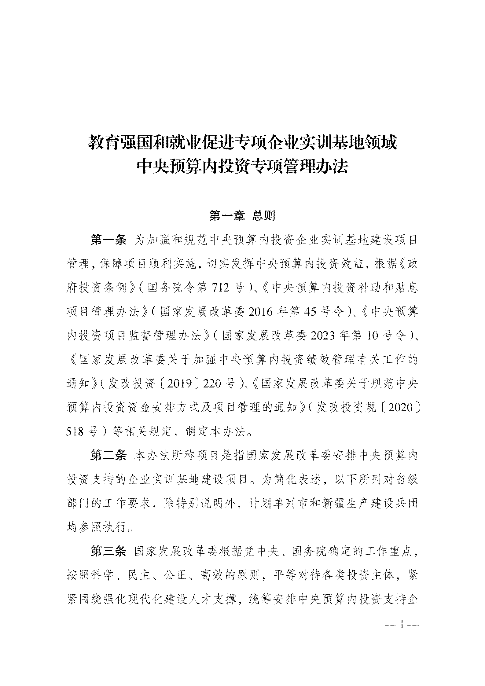 國家發展改革委關于印發 《教育強國和就業促進專項企業實訓基地領域 中央預算內投資專項管理辦法》的通知