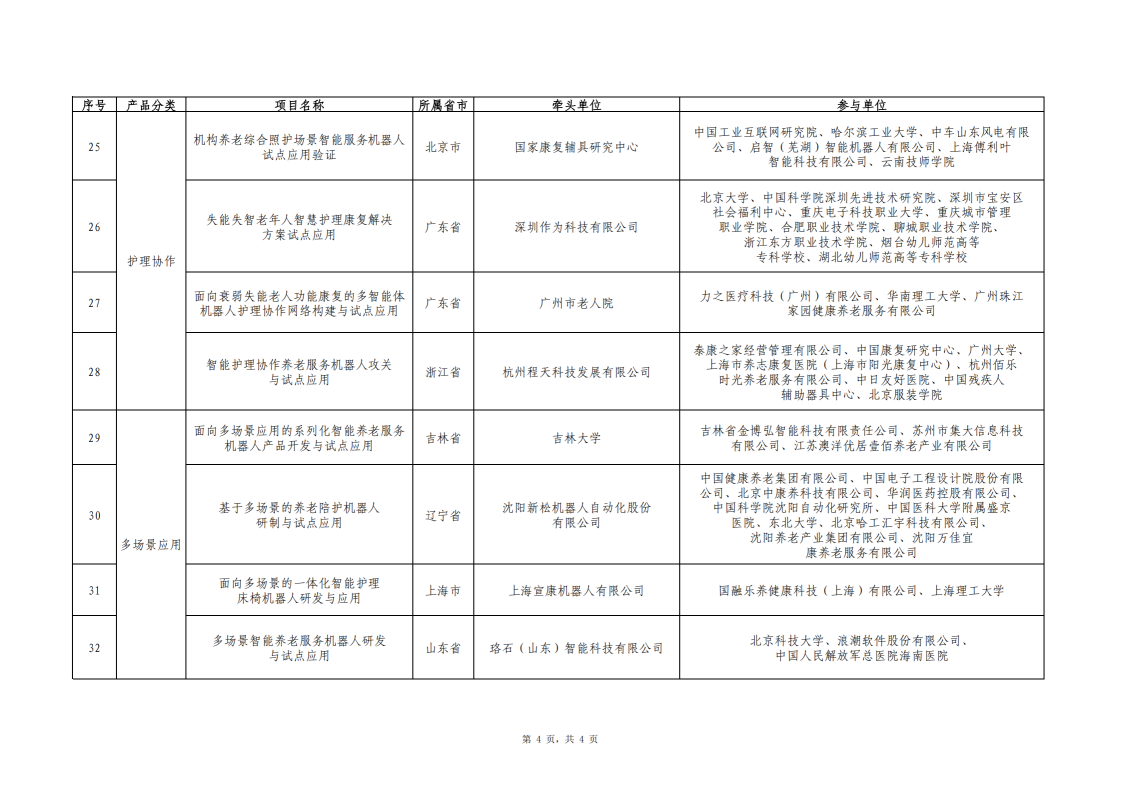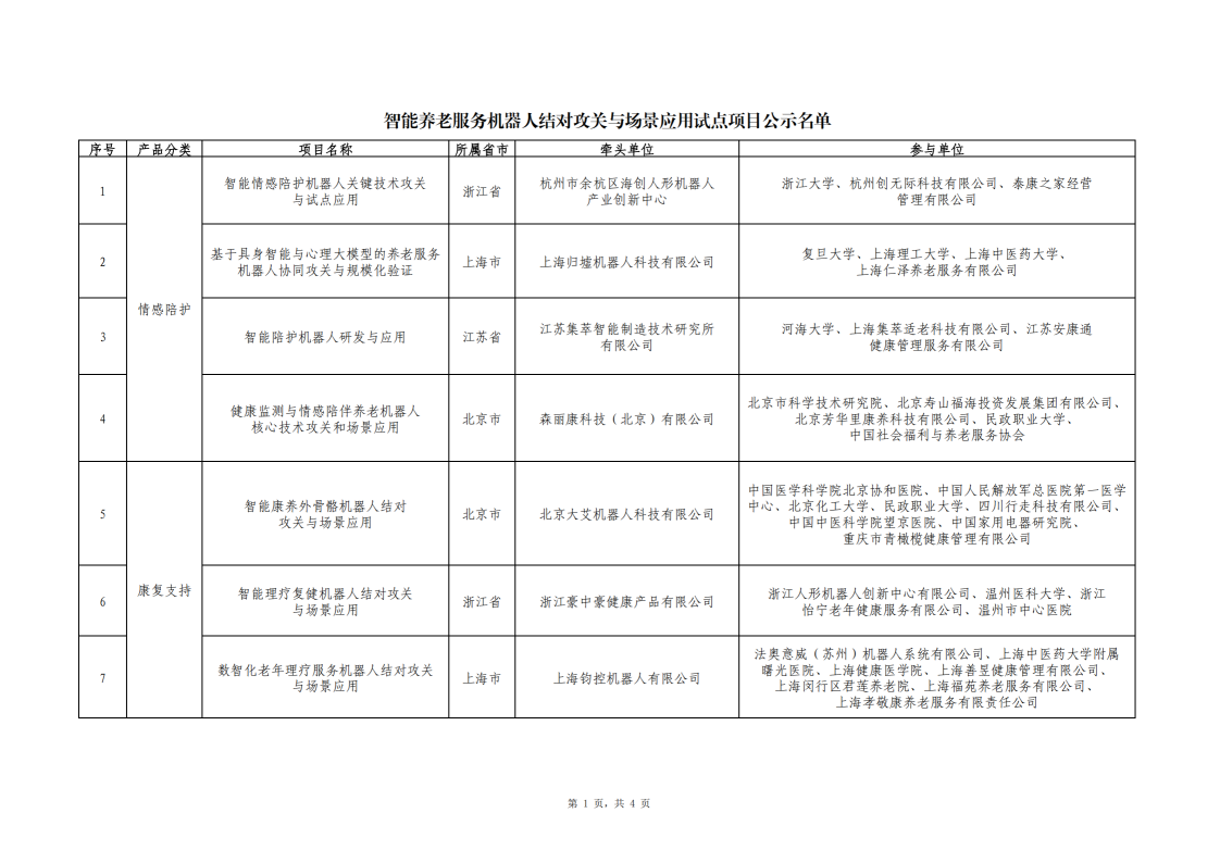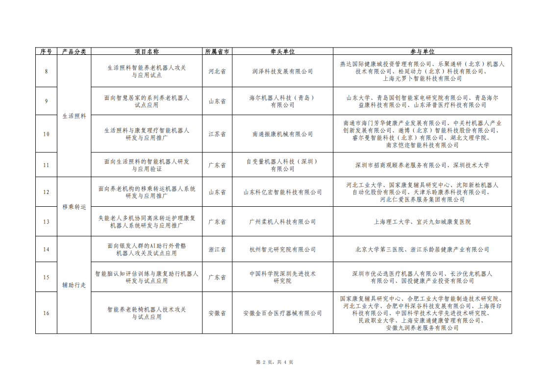 智能養老服務機器人結對攻關與場景應用試點項目名單公示