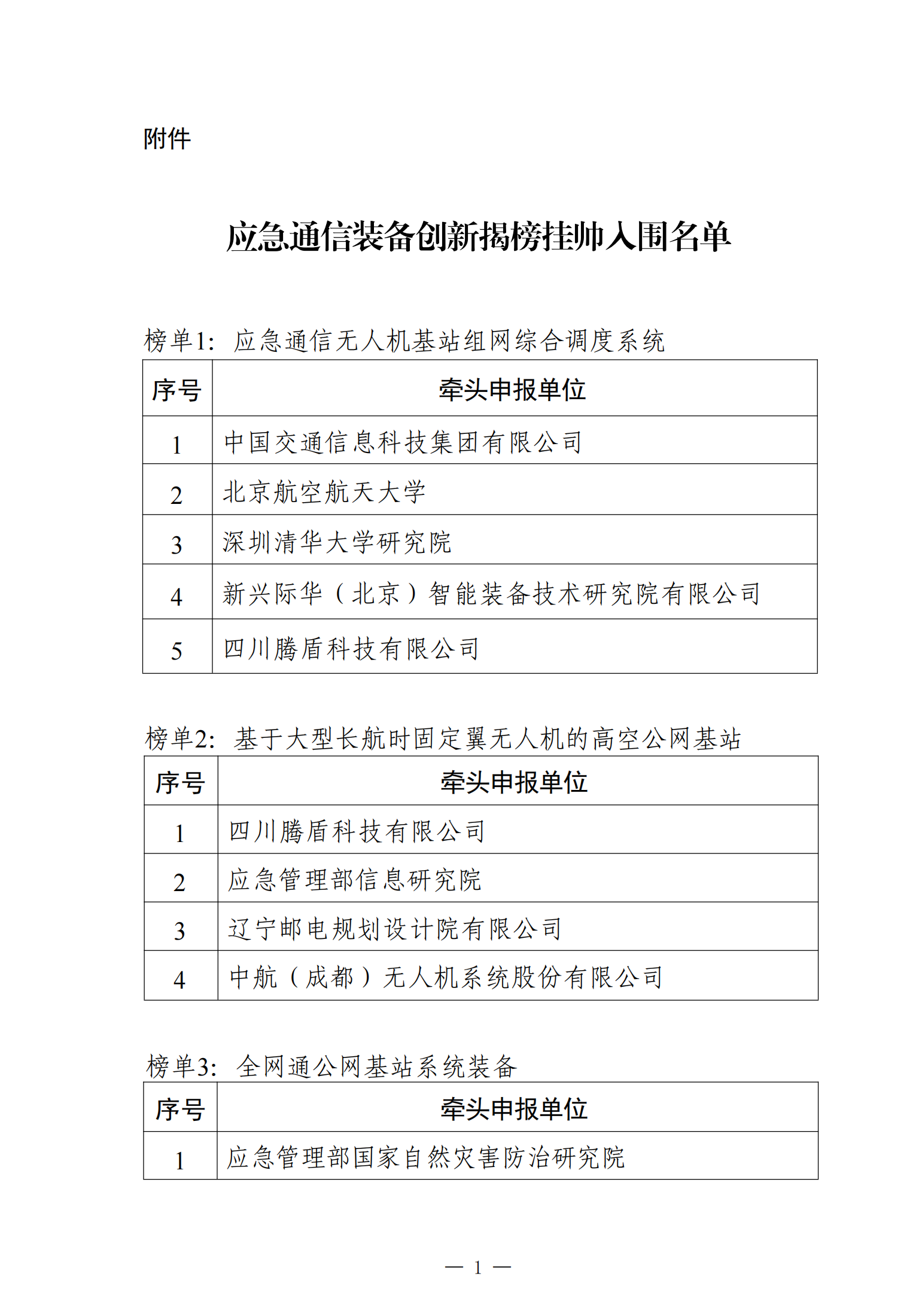 附件:應(yīng)急通信裝備創(chuàng)新揭榜掛帥入圍名單