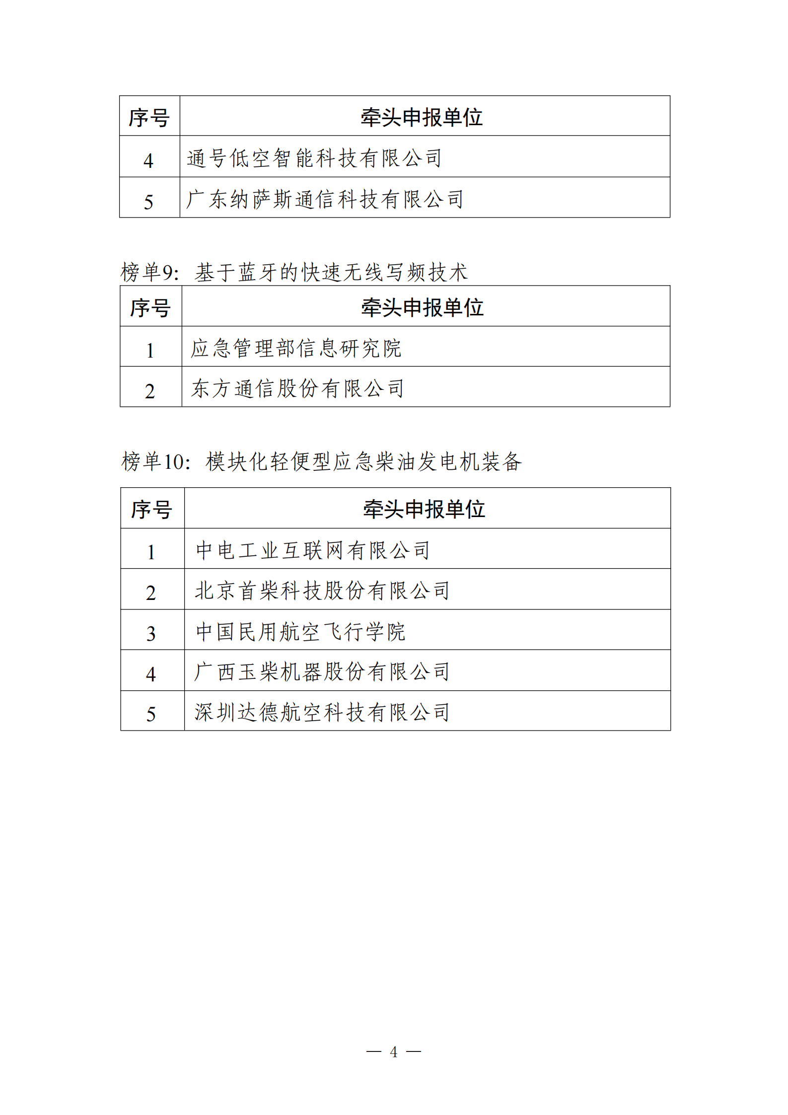 按照《工業(yè)和信息化部辦公廳 應(yīng)急管理部辦公廳關(guān)于組織開展2024年應(yīng)急通信裝備創(chuàng)新揭榜掛帥工作的通知》要求,工業(yè)和信息化部會(huì)同應(yīng)急管理部面向社會(huì)開展應(yīng)急通信產(chǎn)業(yè)創(chuàng)新揭榜掛帥工作。經(jīng)公開申報(bào)、專家評(píng)審、會(huì)議評(píng)審等程序,10項(xiàng)任務(wù)榜單共遴選出46個(gè)單位入圍,現(xiàn)予以公布。