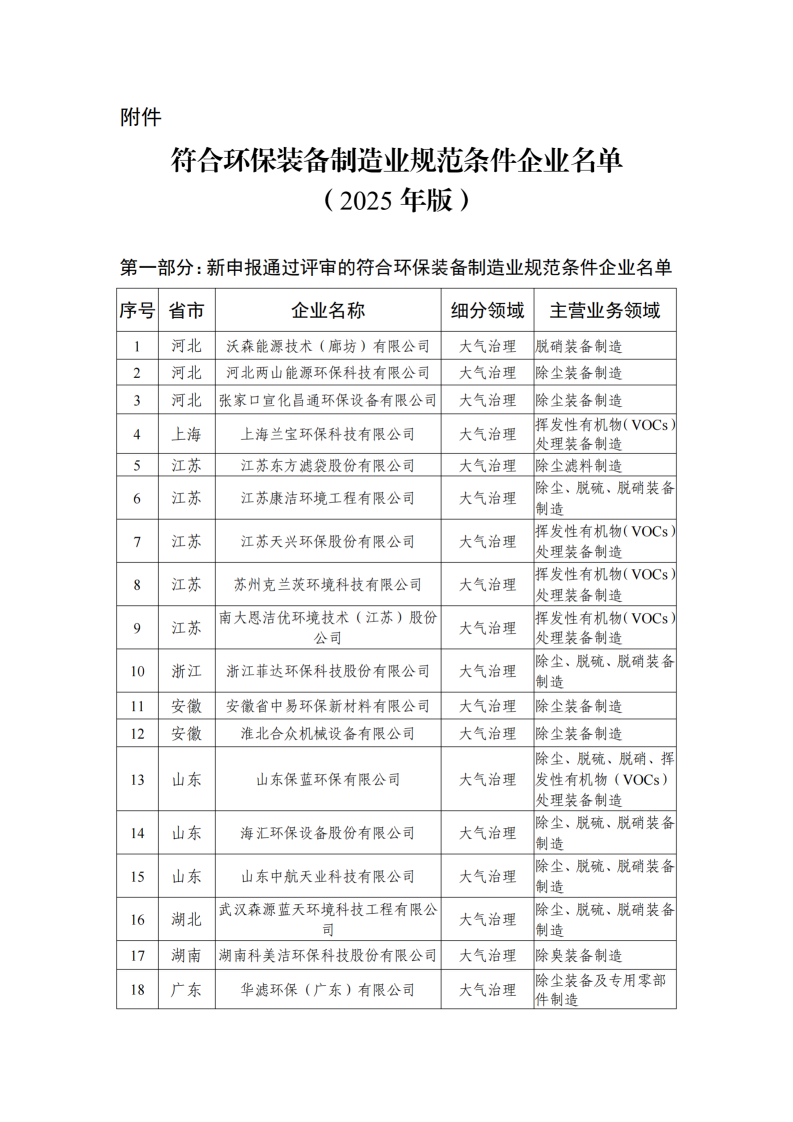 附件:符合環(huán)保裝備制造業(yè)規(guī)范條件企業(yè)名單(2025年版)