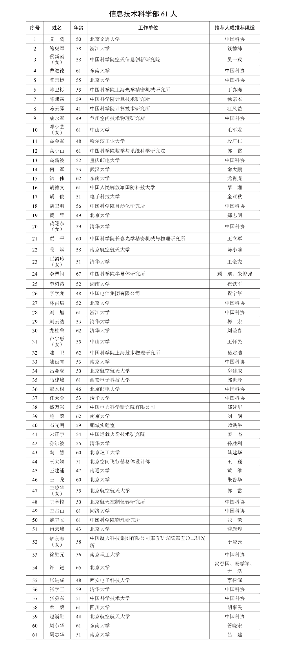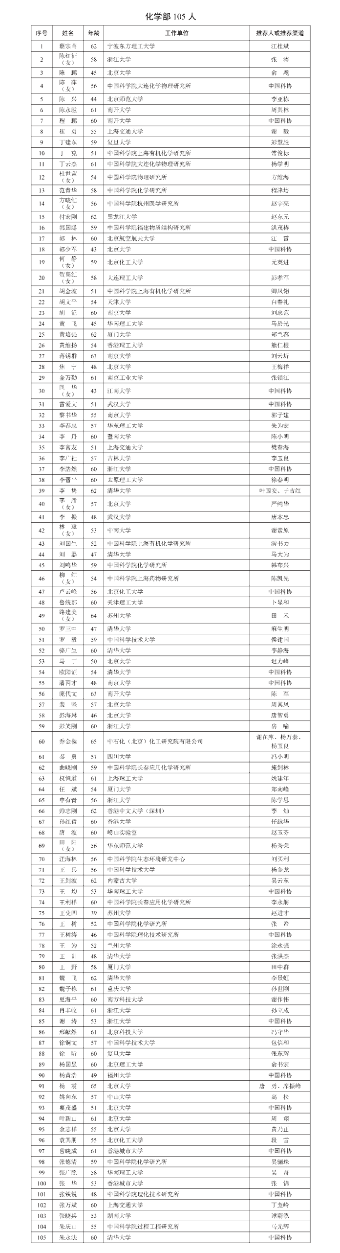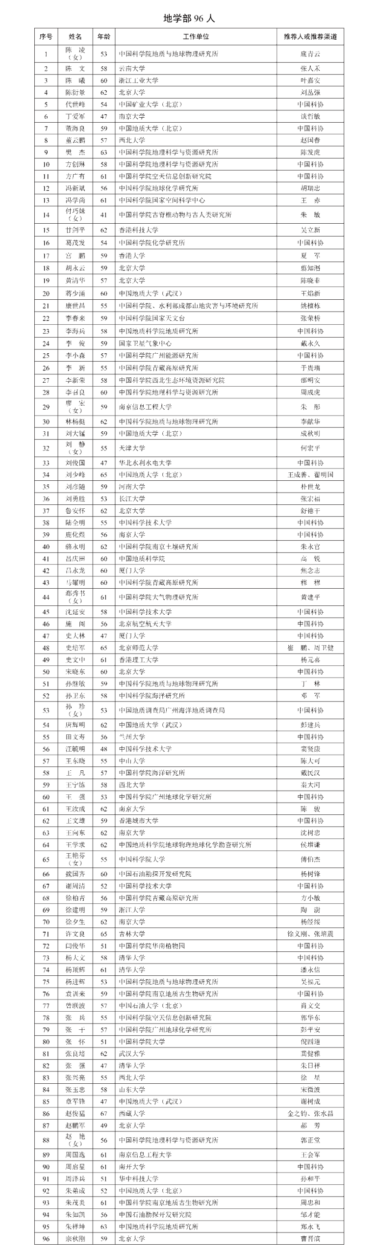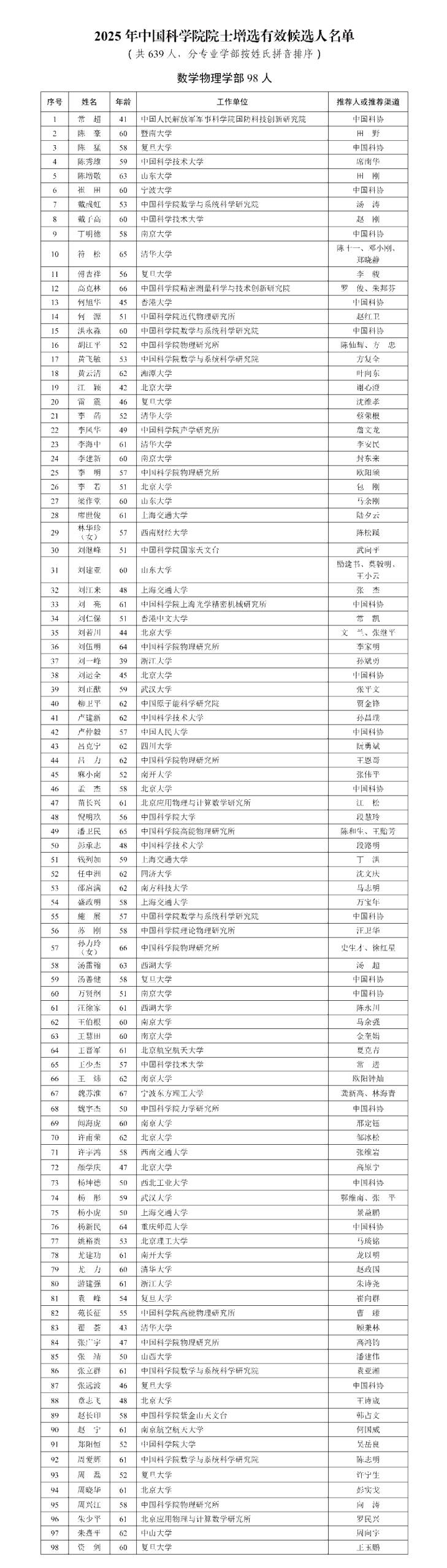 2025年中國科學院院士增選推薦工作已經結束。經中國科學院學部主席團審議,中國科學院黨組審定,確認2025年中國科學院院士增選有效候選人639人。根據《中國科學院院士增選工作實施辦法(試行)》的規定,現將有效候選人名單予以公布。