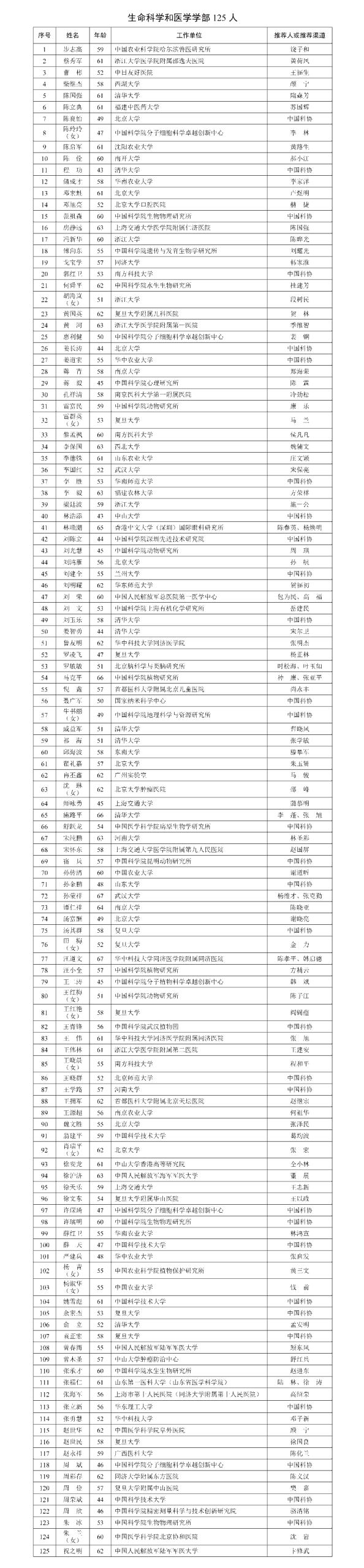 關于公布2025年中國科學院院士增選有效候選人名單的公告