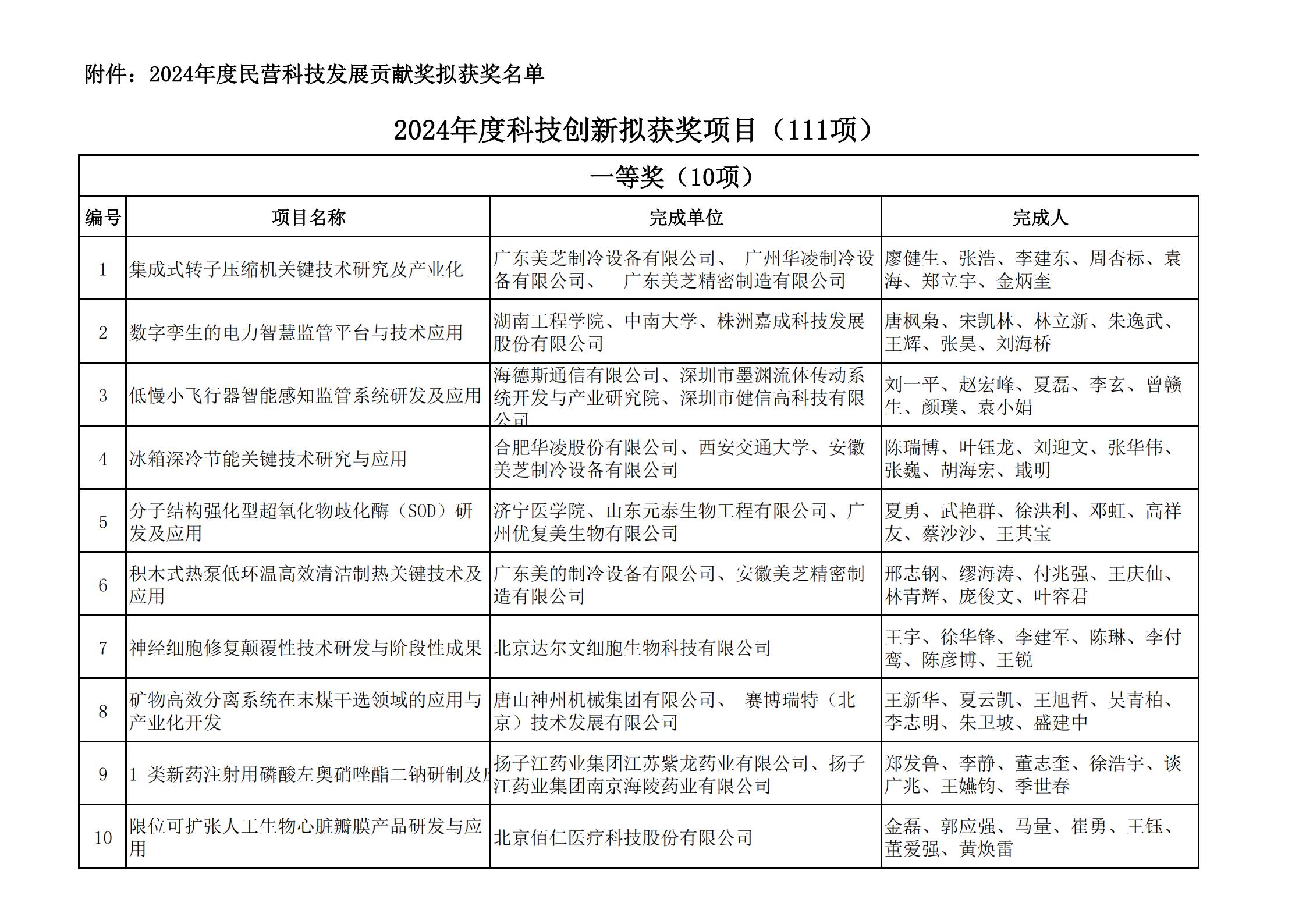 附件:科技創新獎擬獲獎名單 優秀民營科技企業獎擬獲獎名單