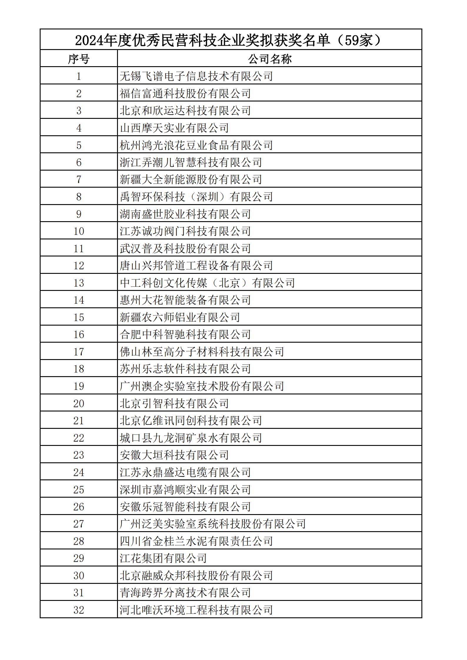 “2024年度民營科技發展貢獻獎”評審結果的公示通知