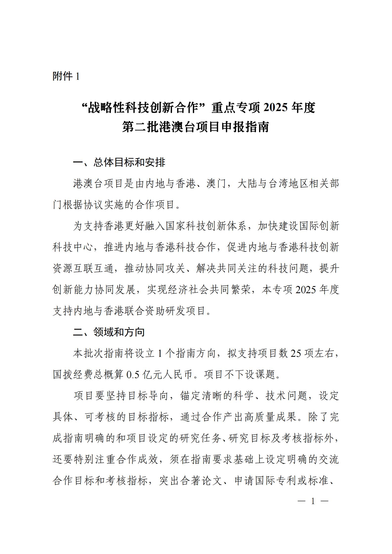 根據《國家重點研發計劃管理暫行辦法》(國科發資〔2024〕28號)相關要求,現發布“戰略性科技創新合作”重點專項2025年度第二批港澳臺項目申報指南。請根據指南要求組織項目申報工作。有關事項通知如下。