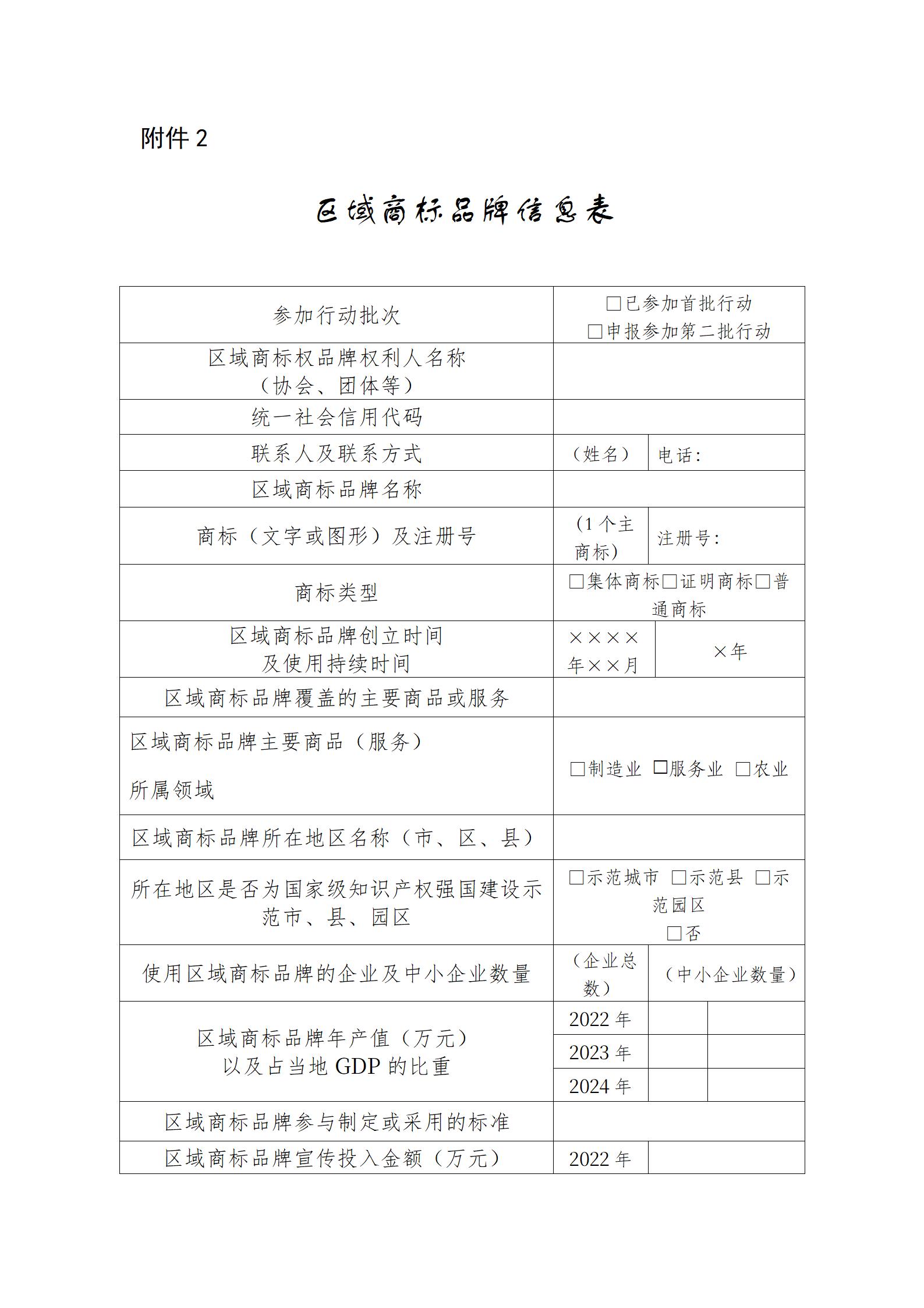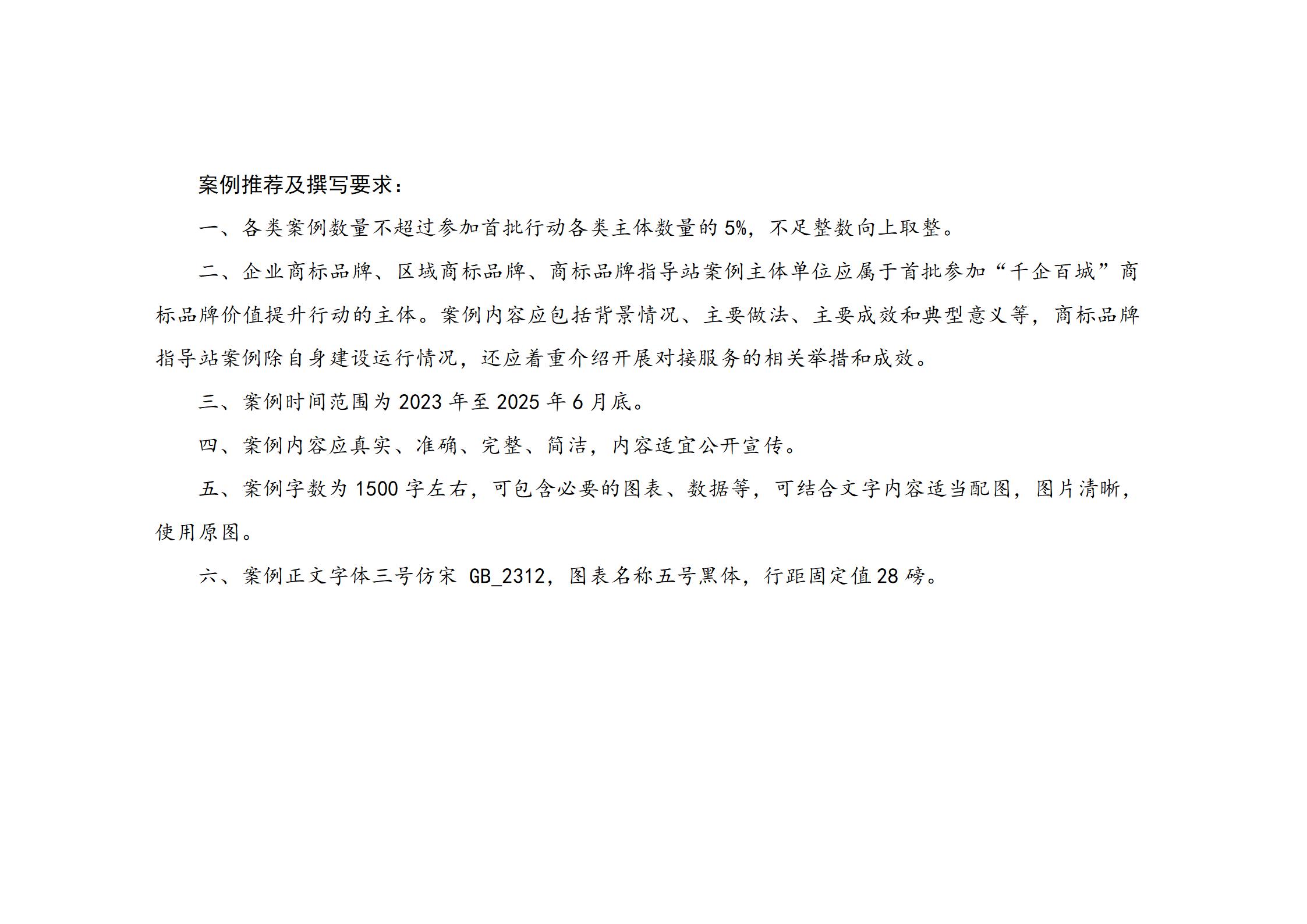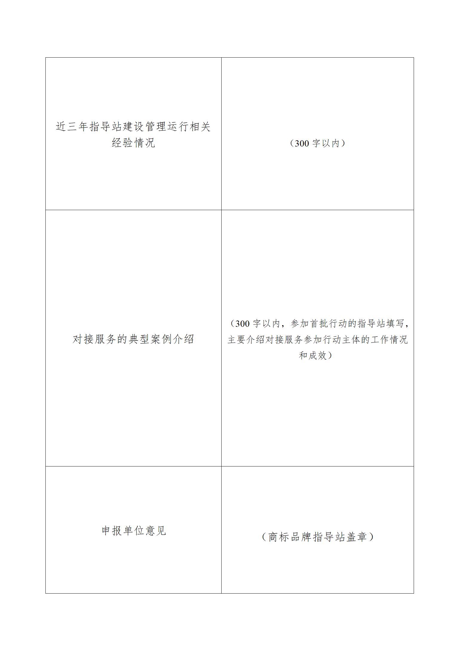 (一)情況報送。各省級知識產權局根據《國家知識產權局辦公室關于公布首批參加“千企百城”商標品牌價值提升行動名單的通知》(國知辦函運字〔2023〕1106號)公布的名單,組織首批參加行動的企業、區域商標品牌主體和商標品牌指導站,填寫年度建設情況(附件1—3)。