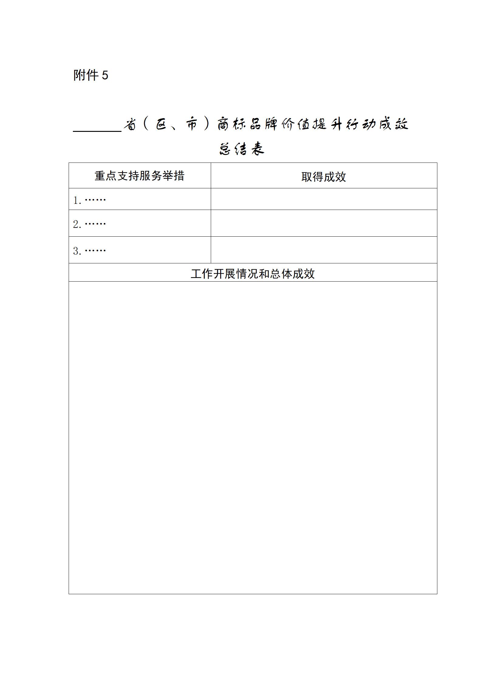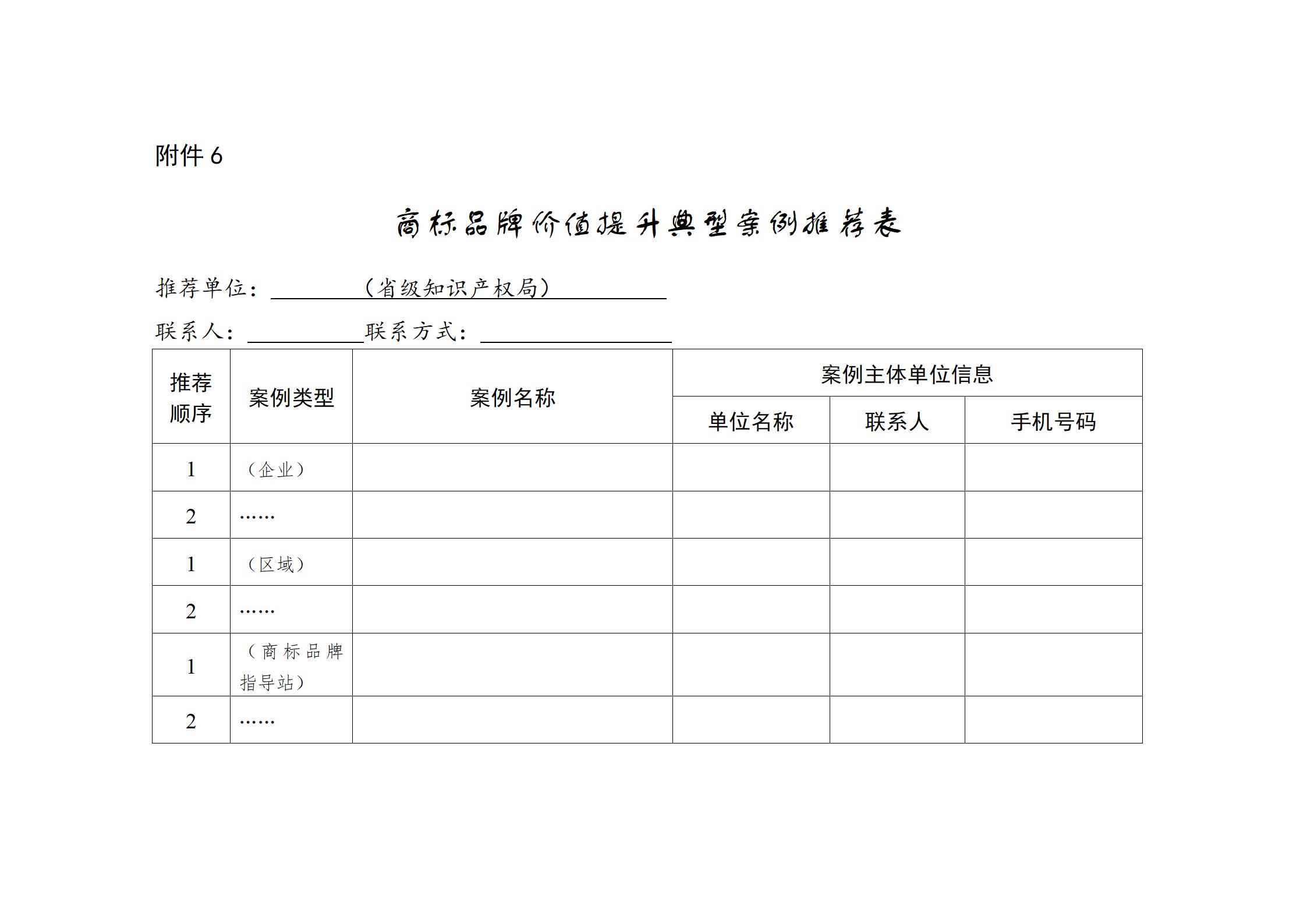 (二)總結評估。各省級知識產權局結合《工作方案》要求,總結實施商標品牌價值提升行動的主要舉措、成效和特色經驗(附件5),推薦報送典型案例(附件6)。國家知識產權局將根據報送材料,對行動開展成效進行綜合評估,利用各類平臺、活動廣泛開展宣傳,發揮引領作用,講好中國商標品牌故事。