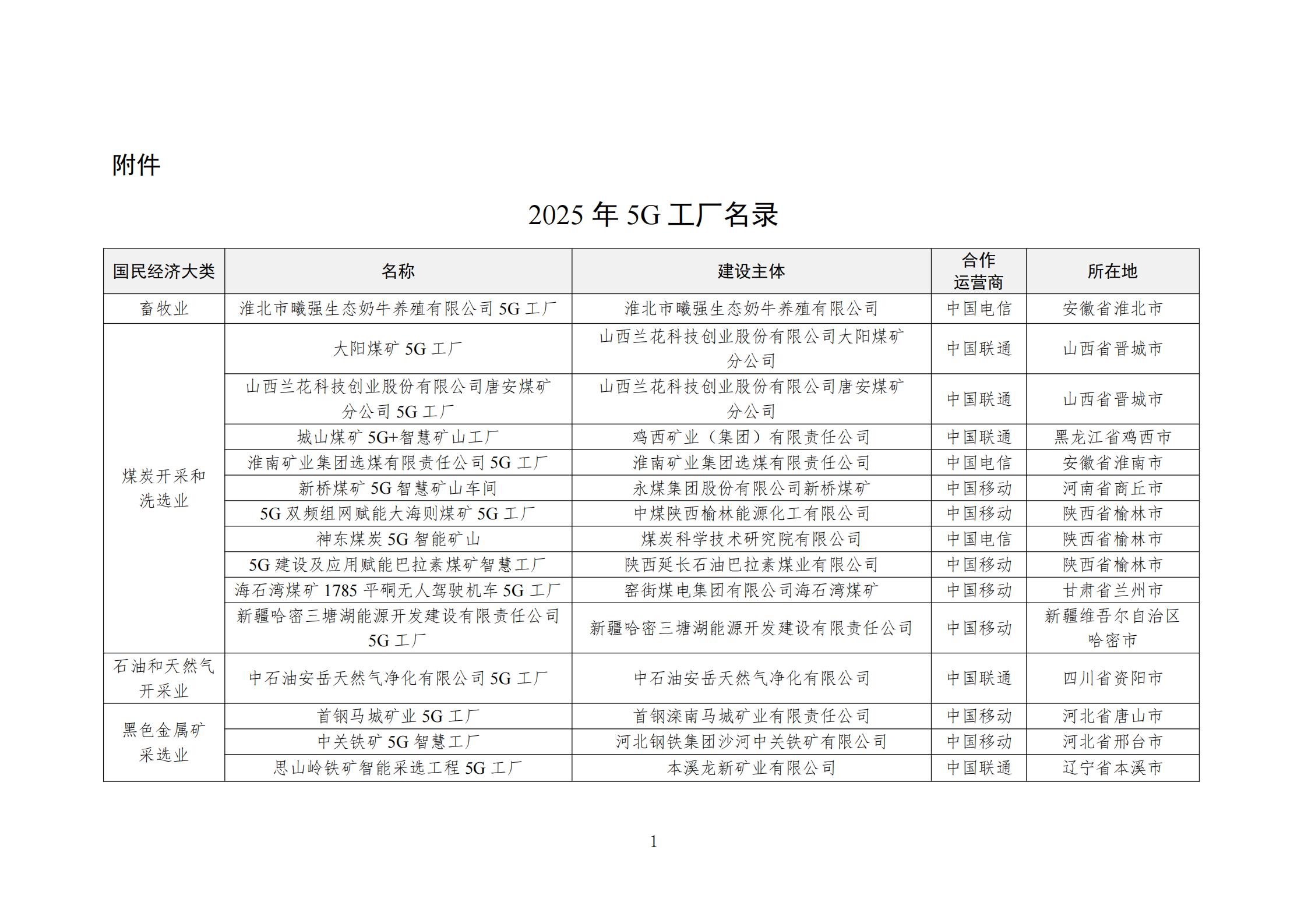 認(rèn)真落實(shí)黨中央、國(guó)務(wù)院決策部署,深入推進(jìn)“5G+工業(yè)互聯(lián)網(wǎng)”創(chuàng)新發(fā)展,加快高水平5G工廠建設(shè),各地依據(jù)《5G全連接工廠建設(shè)指南》(工信廳信管〔2022〕23號(hào))持續(xù)培育建設(shè)5G工廠,有力帶動(dòng)傳統(tǒng)產(chǎn)業(yè)轉(zhuǎn)型升級(jí)。經(jīng)地方推薦、專家評(píng)審等工作,形成《2025年5G工廠名錄》(見附件),共包括48個(gè)行業(yè)、560個(gè)項(xiàng)目,現(xiàn)進(jìn)行公示,歡迎社會(huì)各界監(jiān)督。如有異議,請(qǐng)?jiān)诠酒趦?nèi)與我們聯(lián)系。