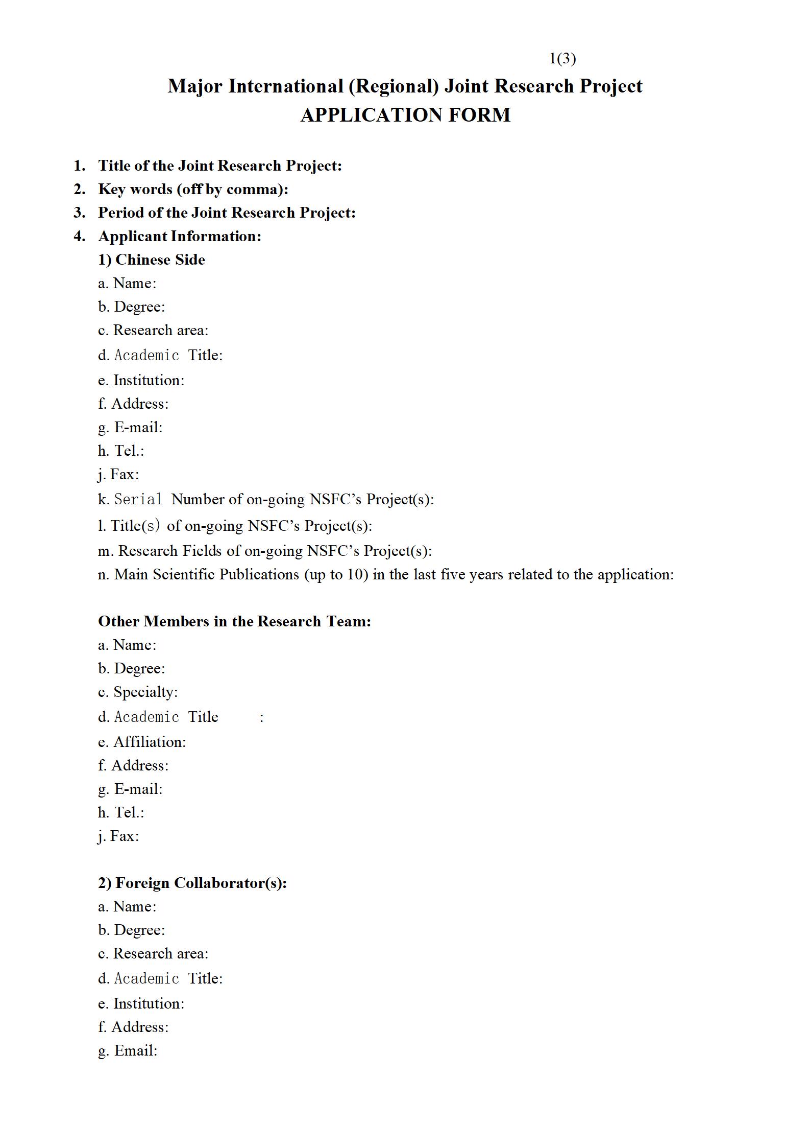 (1)申請人須與CGIAR下屬有關(guān)中心(研究所)的合作者共同填寫英文申請書(見附件1)。