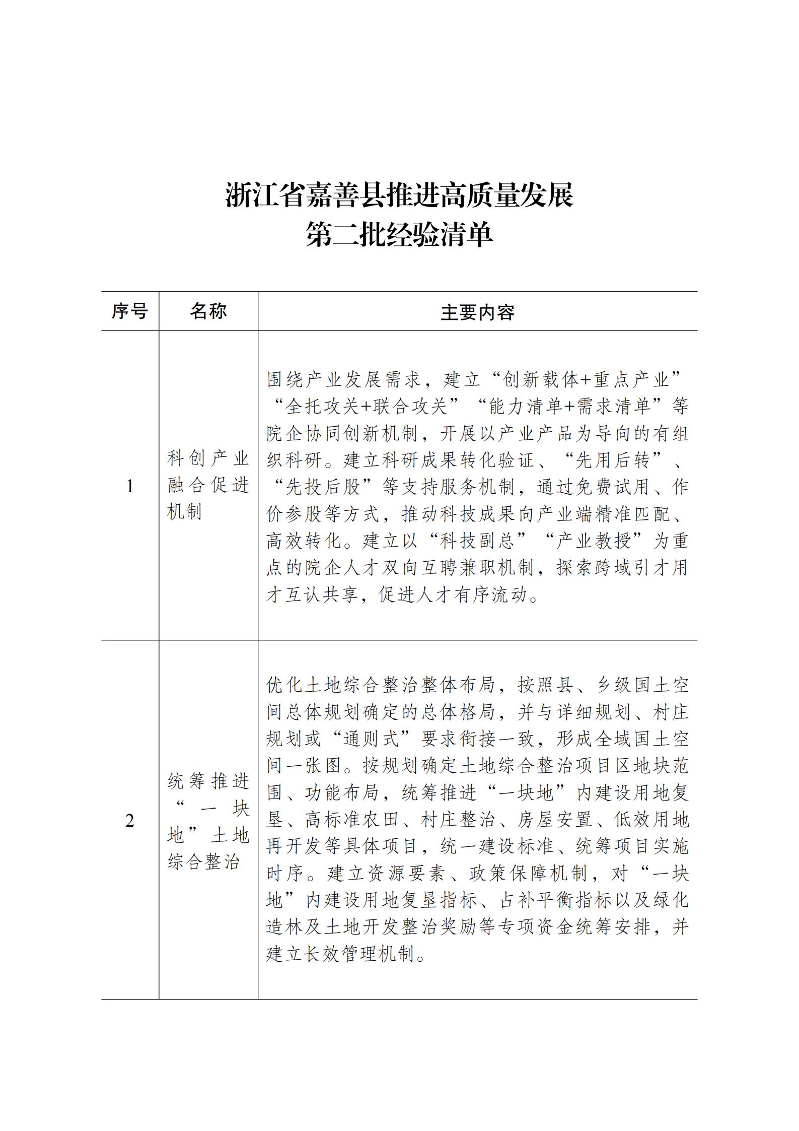 關于印發浙江省嘉善縣推進高質量發展第二批經驗清單的通知