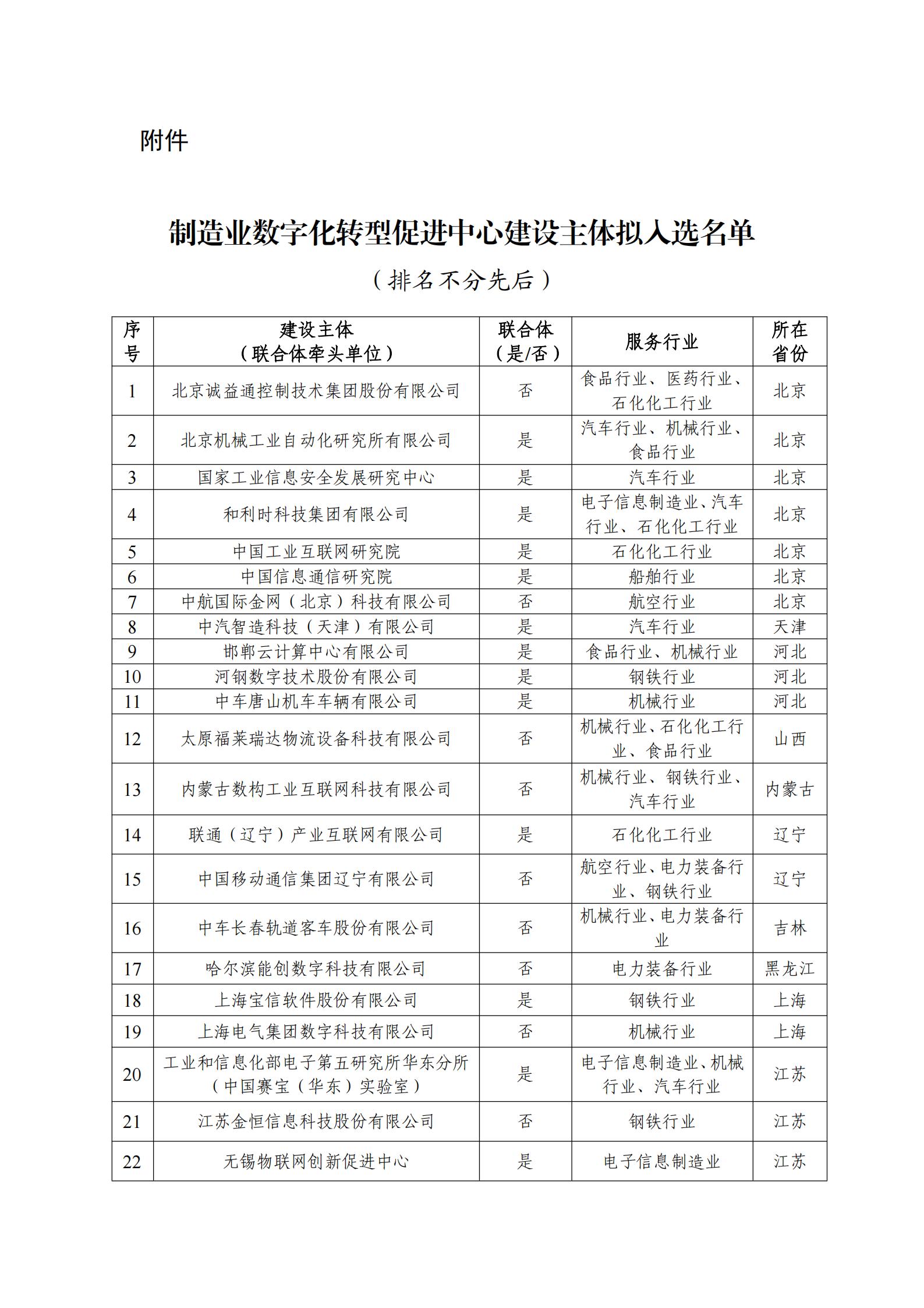 制造業數字化轉型促進中心建設主體擬入選名單公示