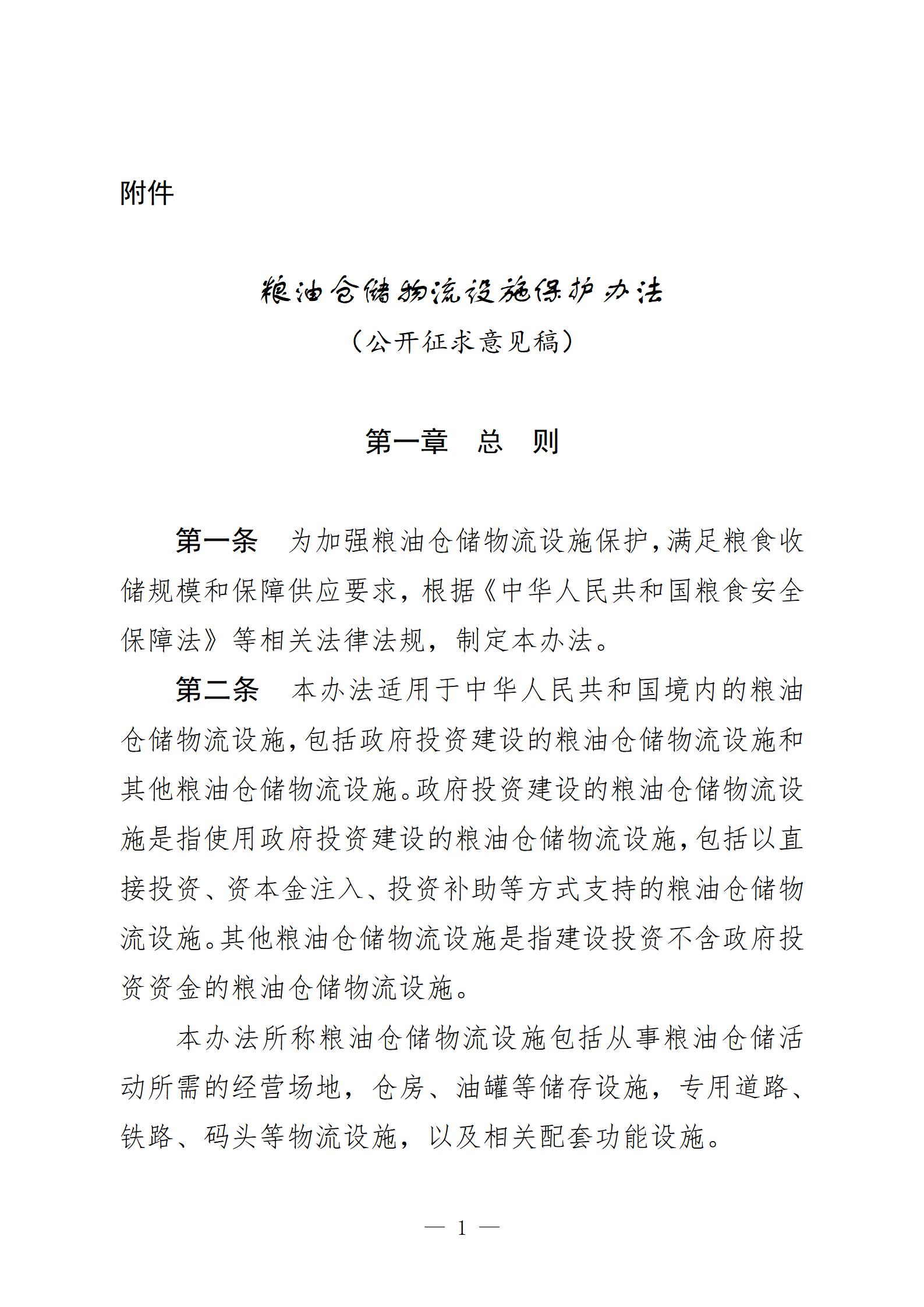 《糧油倉儲物流設(shè)施保護辦法(公開征求意見稿)》意見的公告