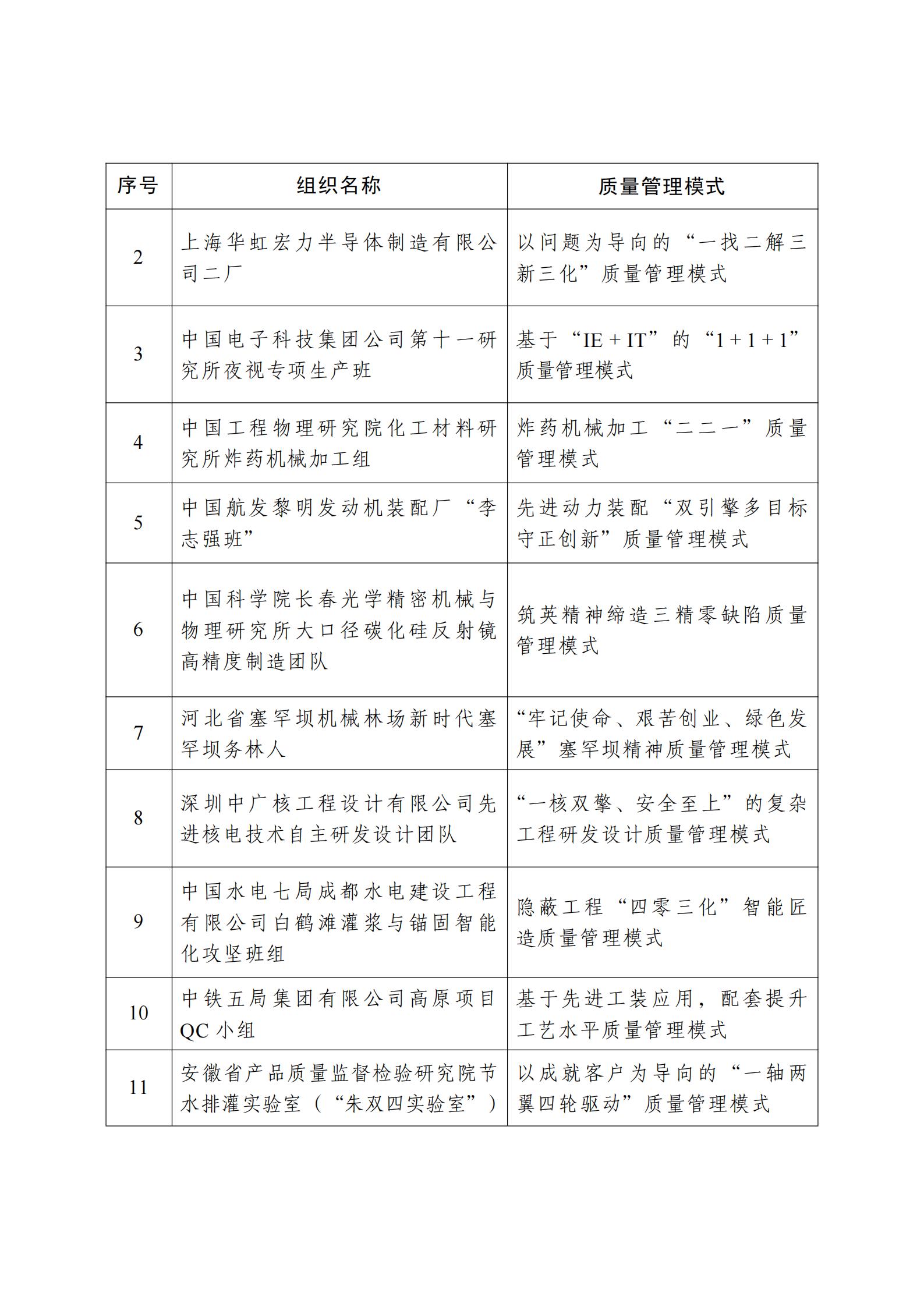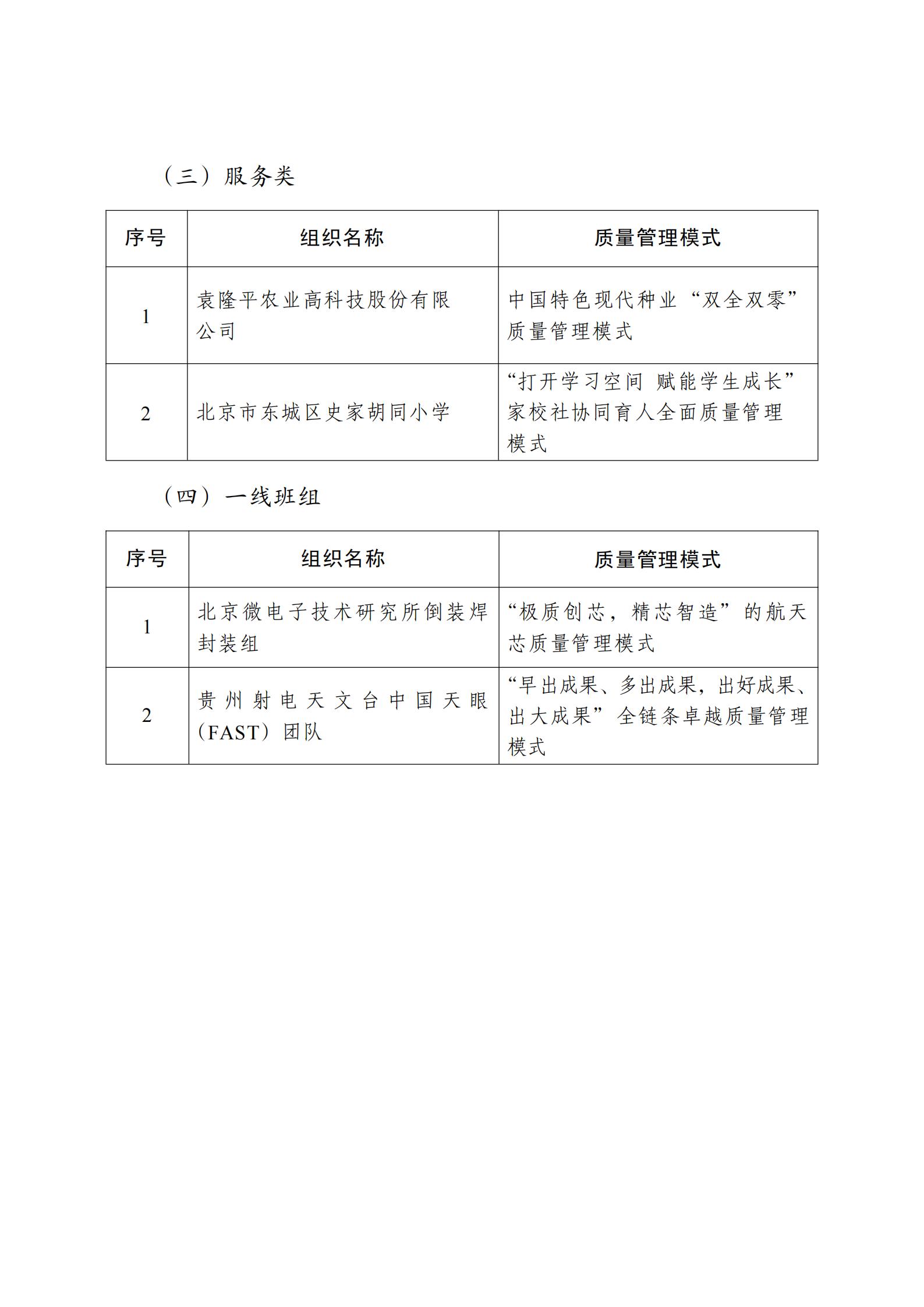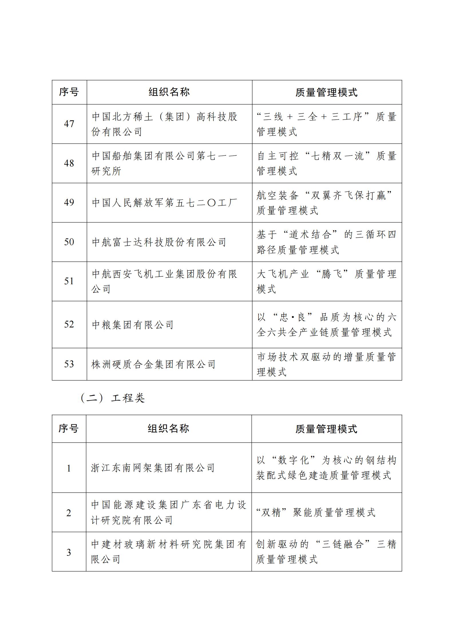 為表彰先進、選樹典型,市場監管總局根據《中國質量獎管理辦法》規定,會同有關部門成立中國質量獎評選表彰委員會,開展第五屆中國質量獎評選表彰工作。經各地區各行業推薦、評選表彰委員會嚴格評審和市場監管總局審定,決定授予杭州海康威視數字技術股份有限公司、江蘇亨通光電股份有限公司、TCL科技集團股份有限公司、萬華化學集團股份有限公司、中國三峽建工(集團)有限公司、袁隆平農業高科技股份有限公司、北京市東城區史家胡同小學、北京微電子技術研究所倒裝焊封裝組、貴州射電天文臺中國天眼(FAST)團隊等9家組織第五屆中國質量獎,授予安波福中央電氣(上海)有限公司等78家組織和太原重型機械集團有限公司樊志勤等6名個人第五屆中國質量獎提名獎。