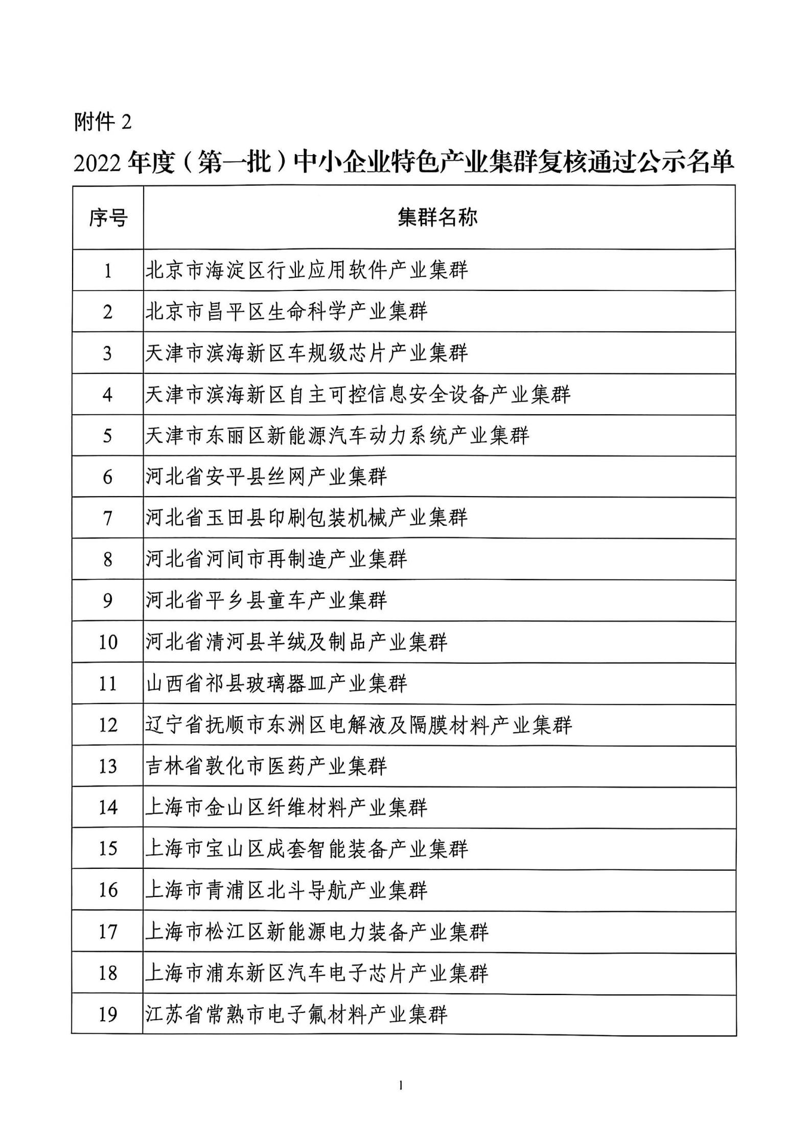 2.2022年度(第一批)中小企業特色產業集群復核通過公示名單