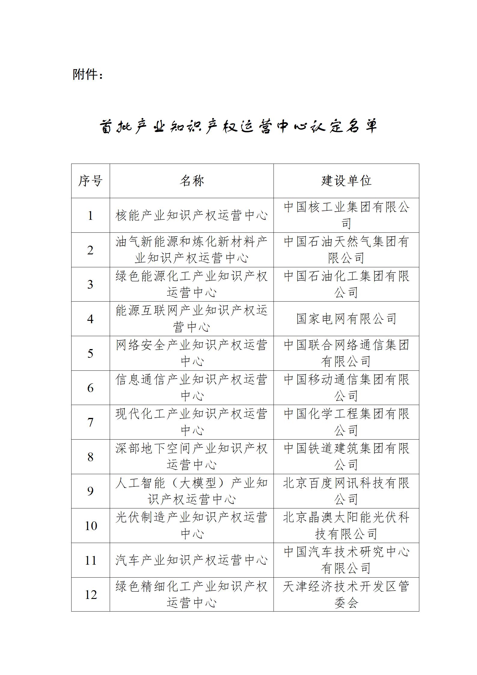 根據《產業知識產權運營中心建設管理工作指引(暫行)》和《國家知識產權局辦公室關于開展國家級產業知識產權運營中心申報認定工作的通知》,現將首批產業知識產權運營中心認定名單予以公示,公示期為2025年9月25日至9月30日。
