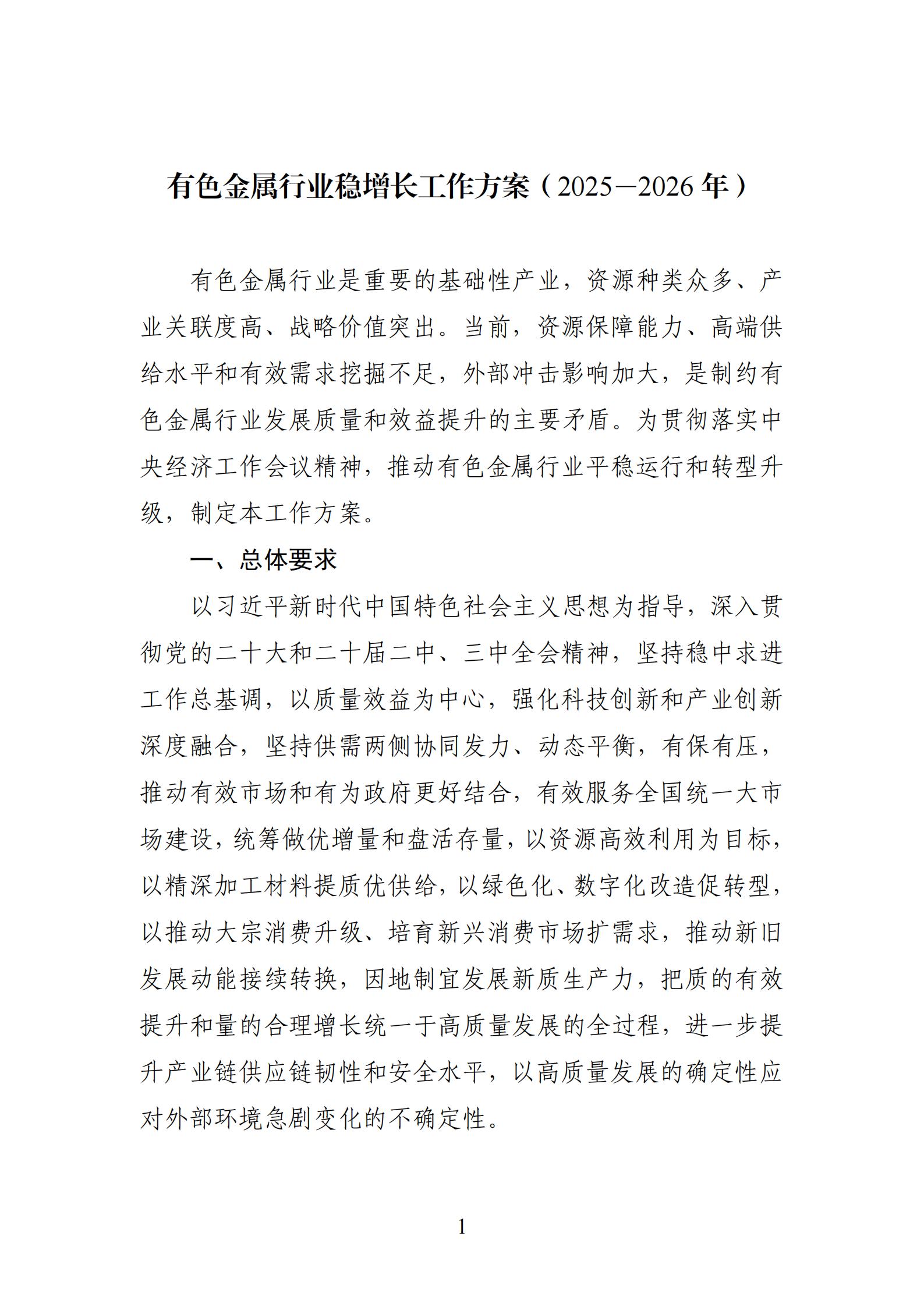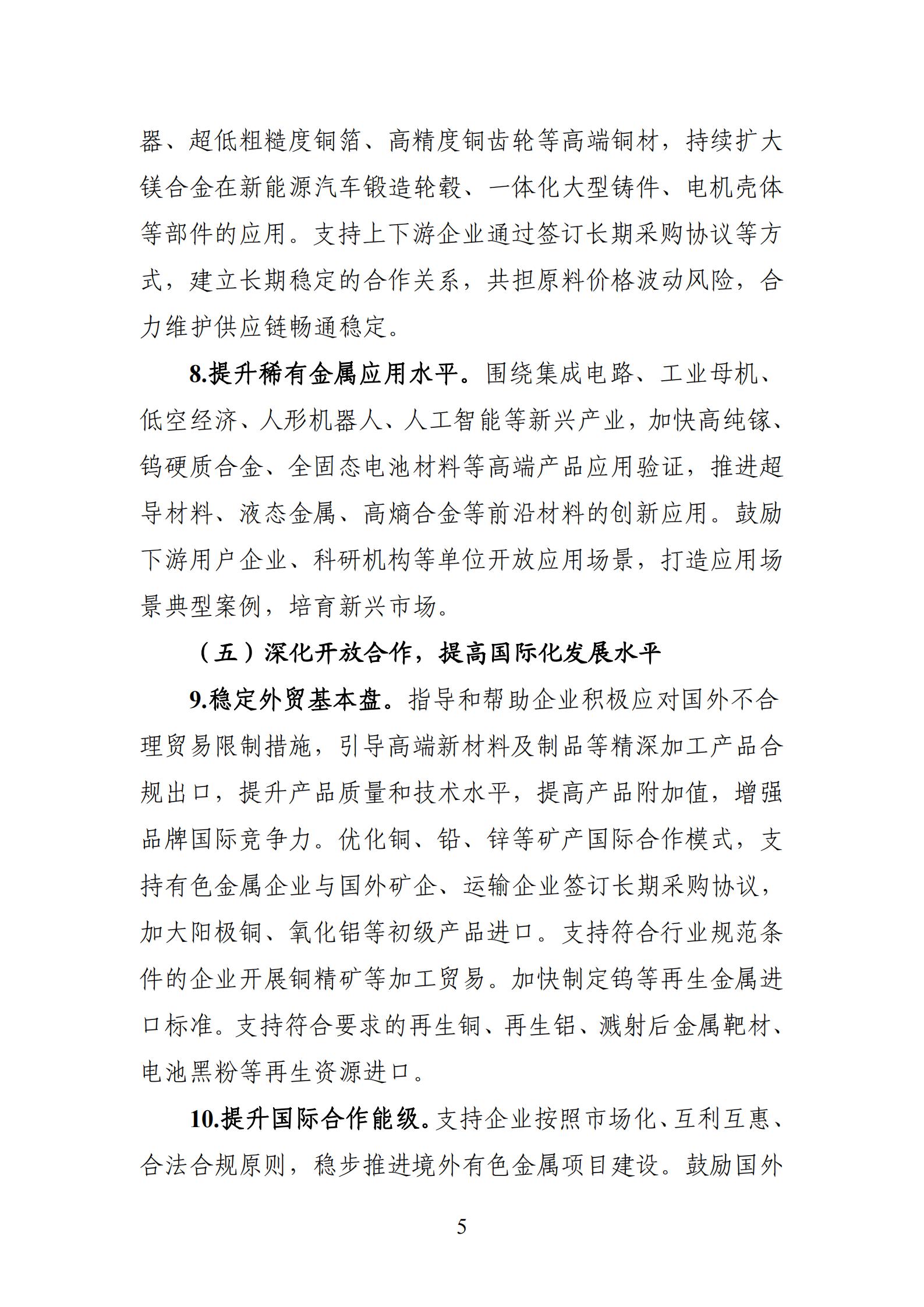 現(xiàn)將《有色金屬行業(yè)穩(wěn)增長(zhǎng)工作方案(2025—2026年》印發(fā)給你們,請(qǐng)結(jié)合實(shí)際認(rèn)真抓好落實(shí)。