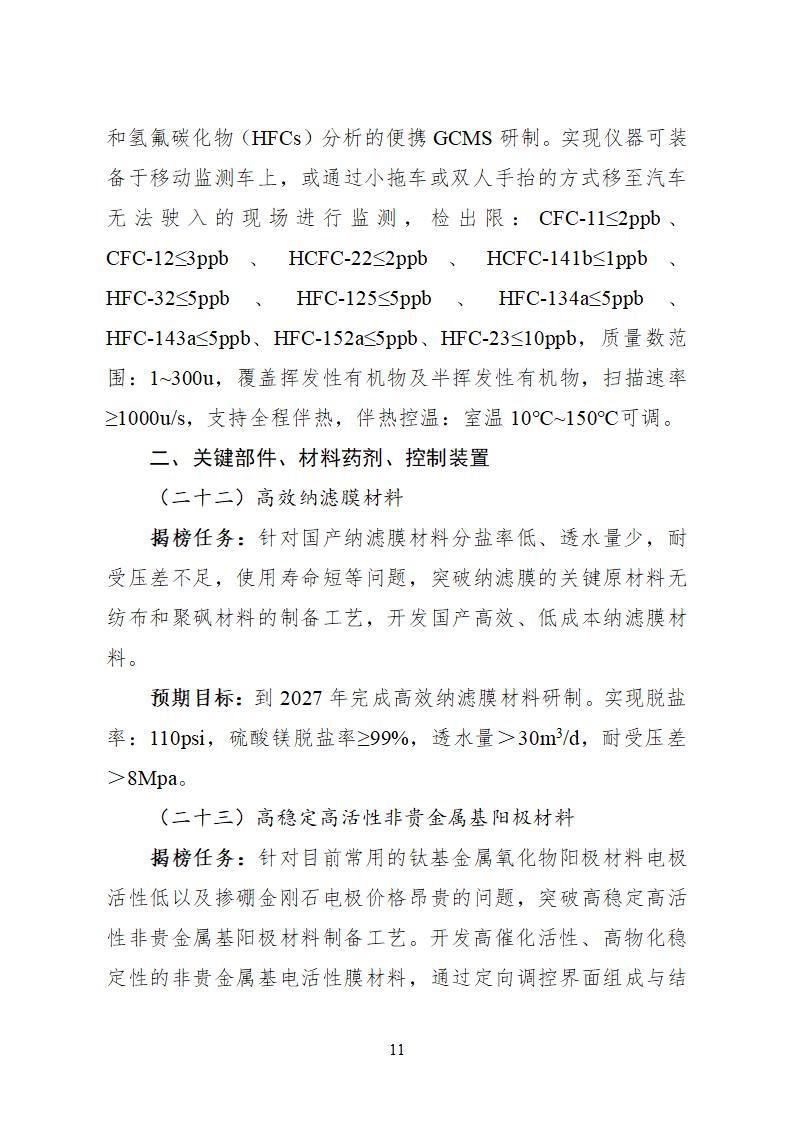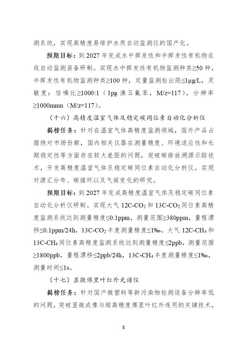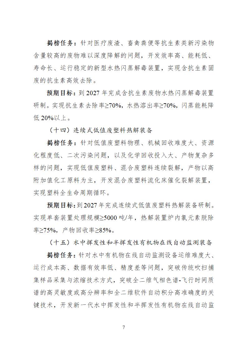 面向大氣污染防治、水污染防治、固體廢物處理、環境監測專用儀器儀表領域實際需求,聚焦高鹽廢水處理回用、干式煙氣凈化、持久性有機污染物識別監測等難點問題,共設立28項任務榜單(詳見附件1)。