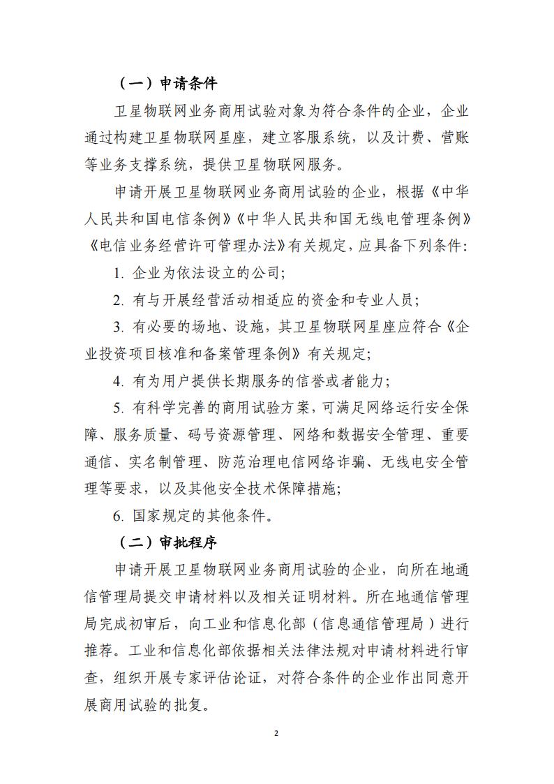 附件:工業和信息化部關于組織開展衛星物聯網業務商用試驗的通知(征求意見稿)