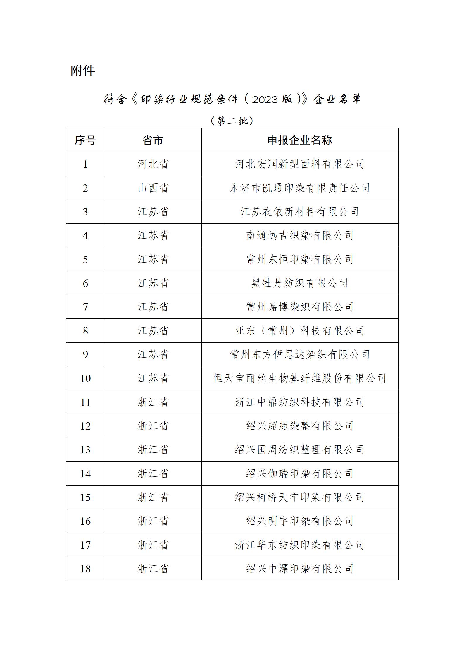 附件:符合《印染行業規范條件(2023版)》企業名單(第二批)