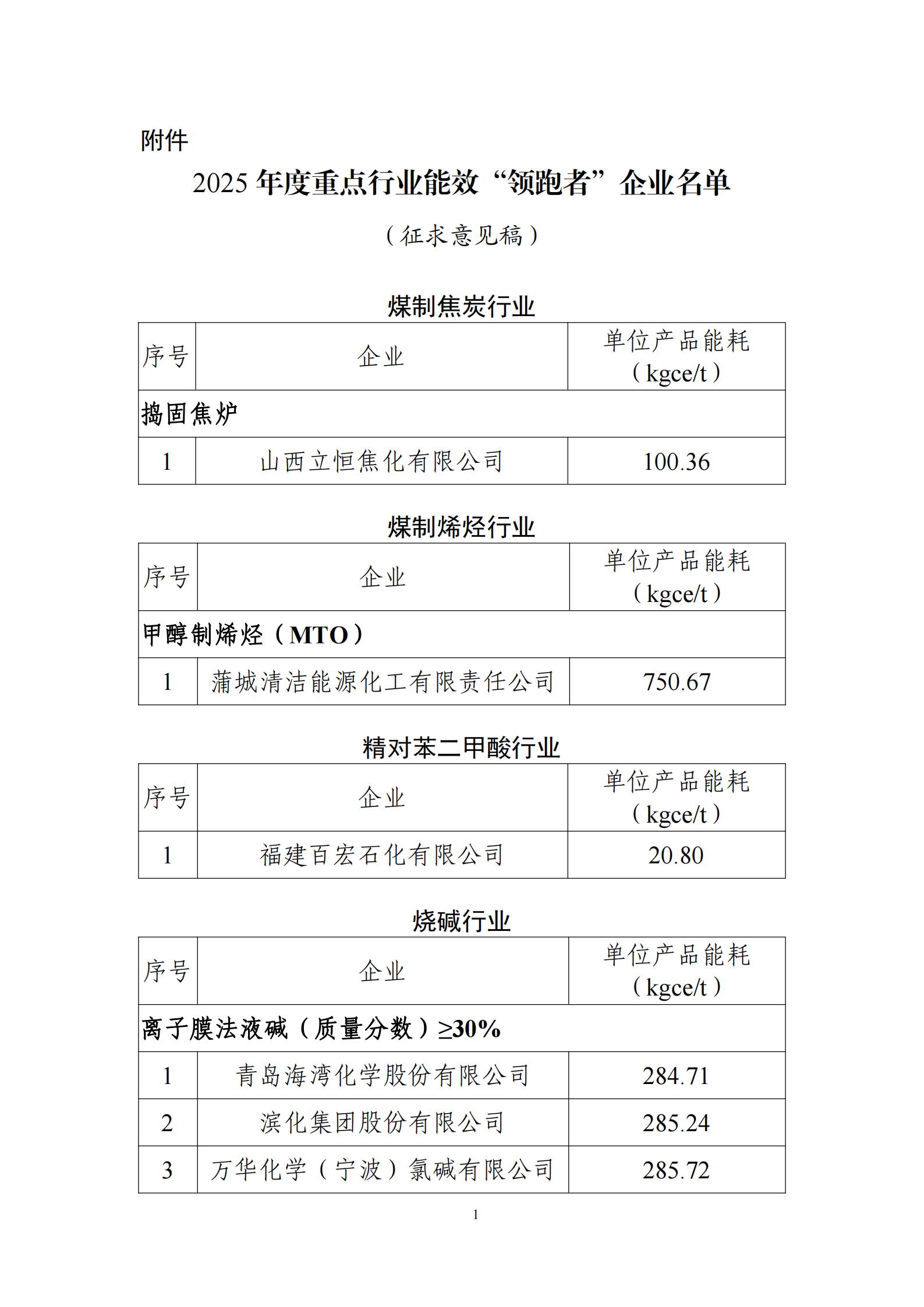 附件:2025年度重點行業能效“領跑者”企業名單(征求意見稿)