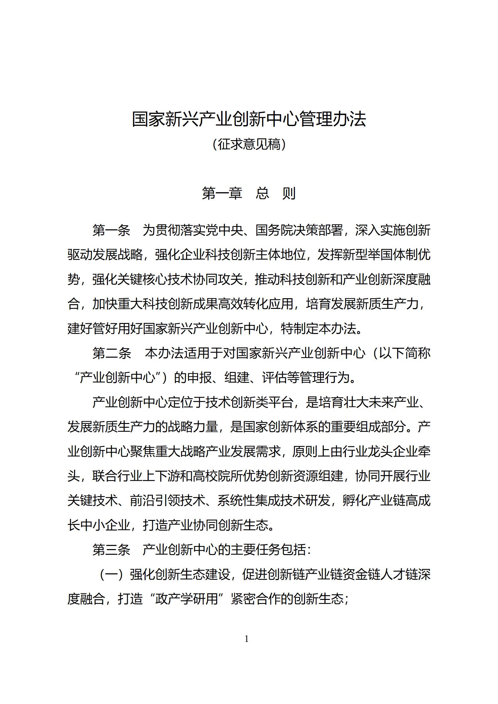 關于向社會公開征求《國家新興產業創新中心管理辦法(征求意見稿)》《國家產業技術工程化中心管理辦法(征求意見稿)》意見的公告
